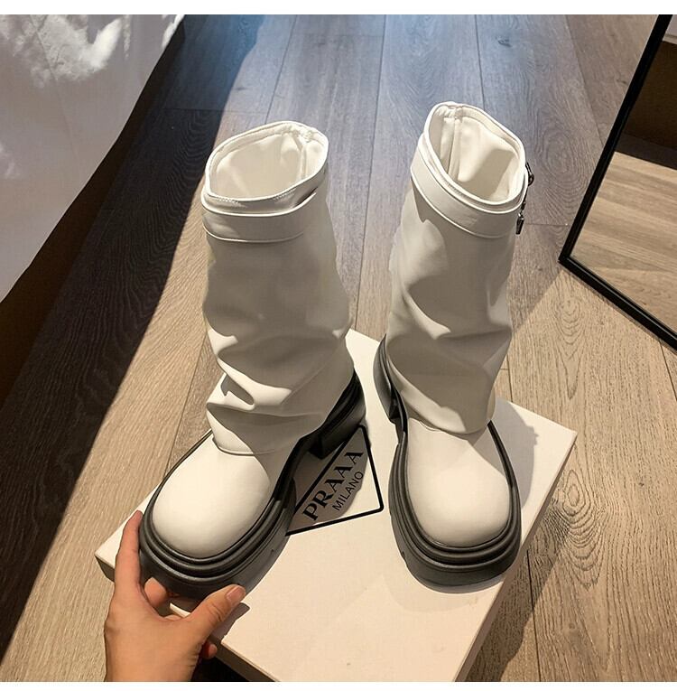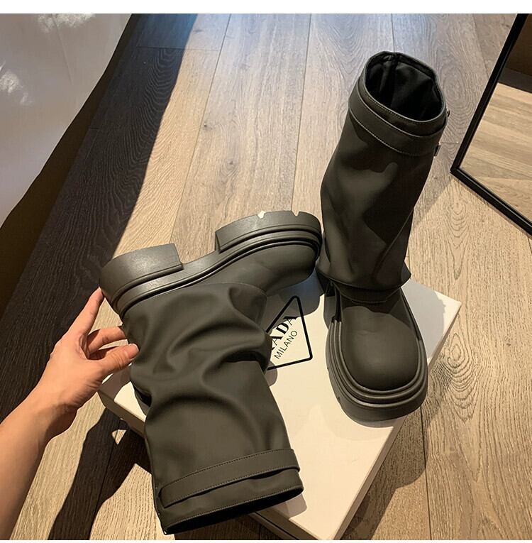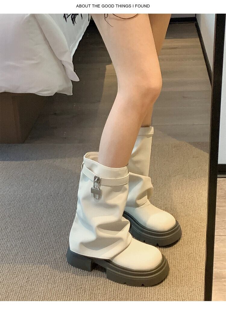 Jia Bujia ブーツ レディース ショートブーツ 2023 秋の新ファッション多用途レトロオートバイ厚底ストリートパンツブーツ 靴 シューズ オータム 秋物 jxjxf35876988245