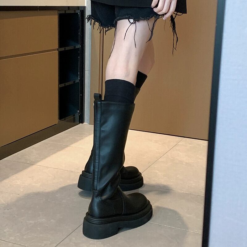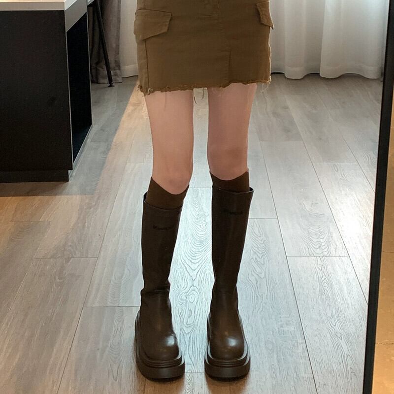 Jia Bujia ブーツ女性騎士ブーツ 2023 秋の新しいレトロスタイルのフランスの厚底コンタブルブーツトレンド 靴 シューズ オータム 秋物 jxjxf86177636107