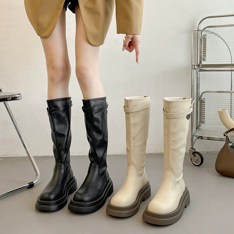 Jia Bufake ブーツの女性 2023 新しい秋のファッション多用途レトロスタイル厚底ノー膝スリムブーツトレンディな 靴 シューズ オータム 秋物 jxjxf77570708084