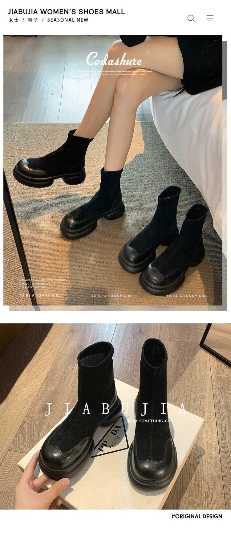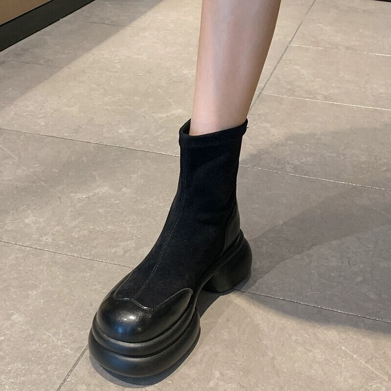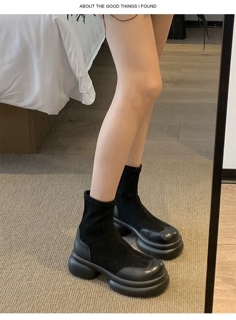 Jia Bufake ショートブーツ レディース 2023 秋多用途小型厚底 eign スタイル弾性スリムブーツトレンディ 靴 シューズ エラスティック 伸縮 オータム 秋物 jxjxf77283006523