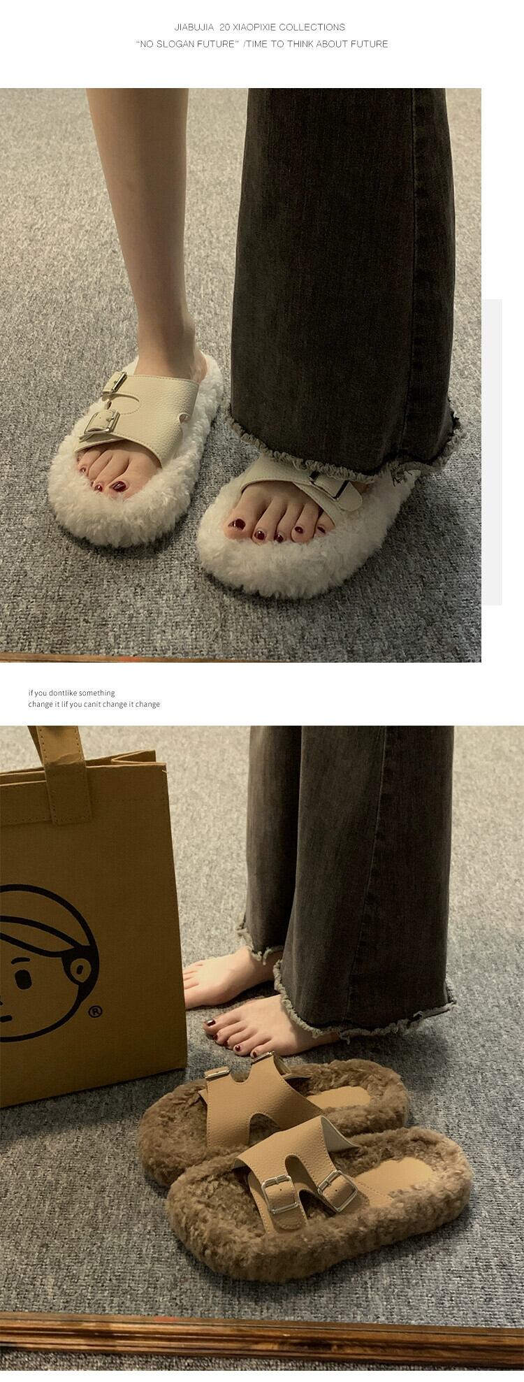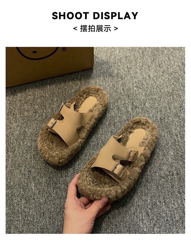 Jia Bujia のアウターファースリッパ女性 2023 秋の新スタイル comtable とスタイリッシュなベルトバックルソフトボトムスリッパ ミュール 靴 シューズ オータム 秋物 ハーネス jxjxf99232450461