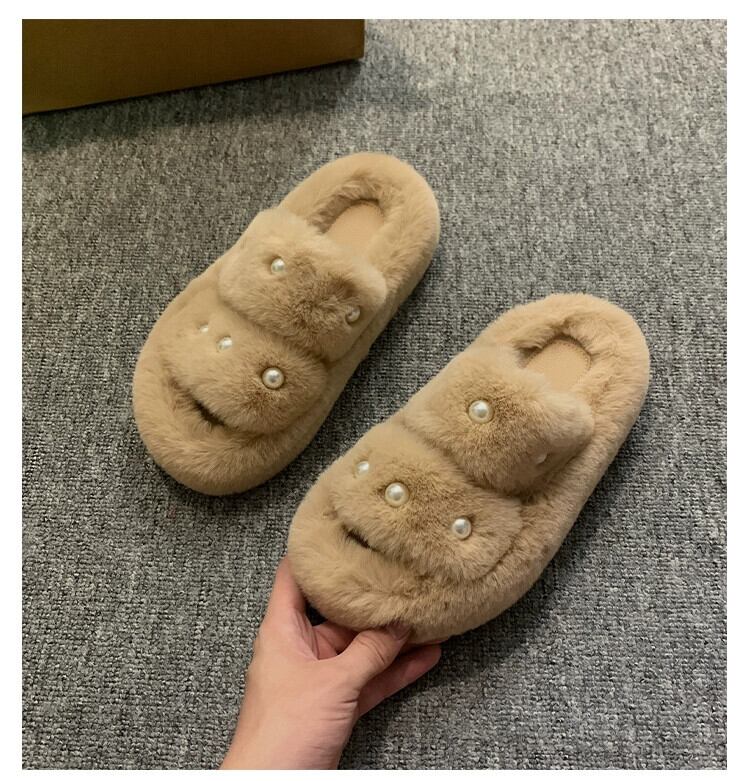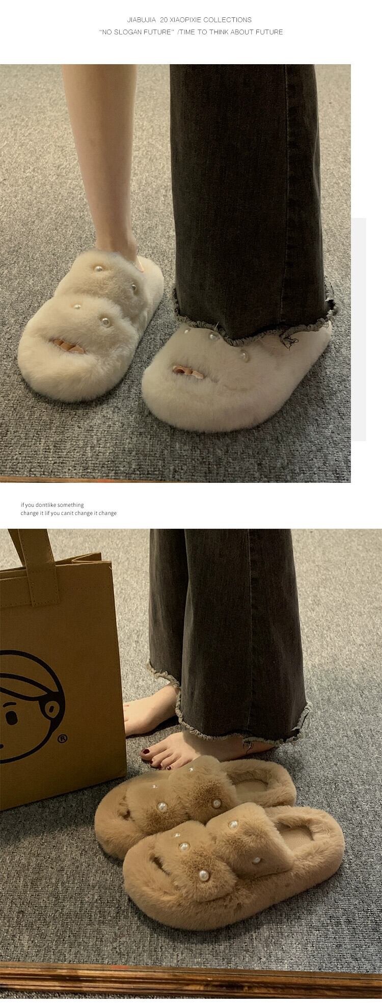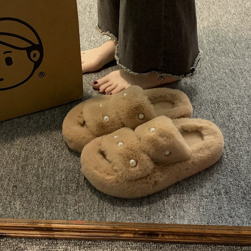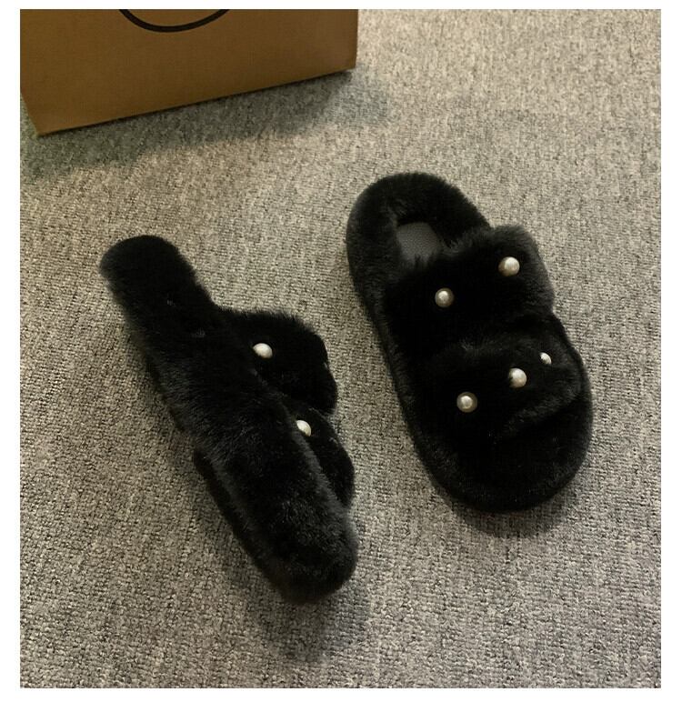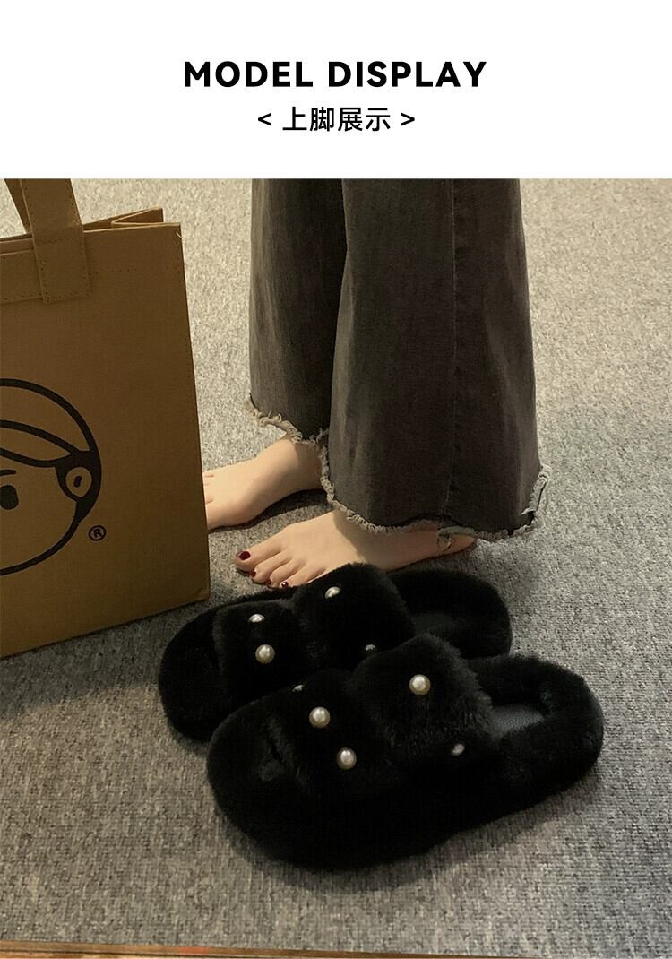 Jia Bujia のアウタースリッパ女性 2023 秋の新しい暖かい気質パールコンタブルファーシューズトレンド 靴 ミュール オータム 秋物 真珠 jxjxf18056623489