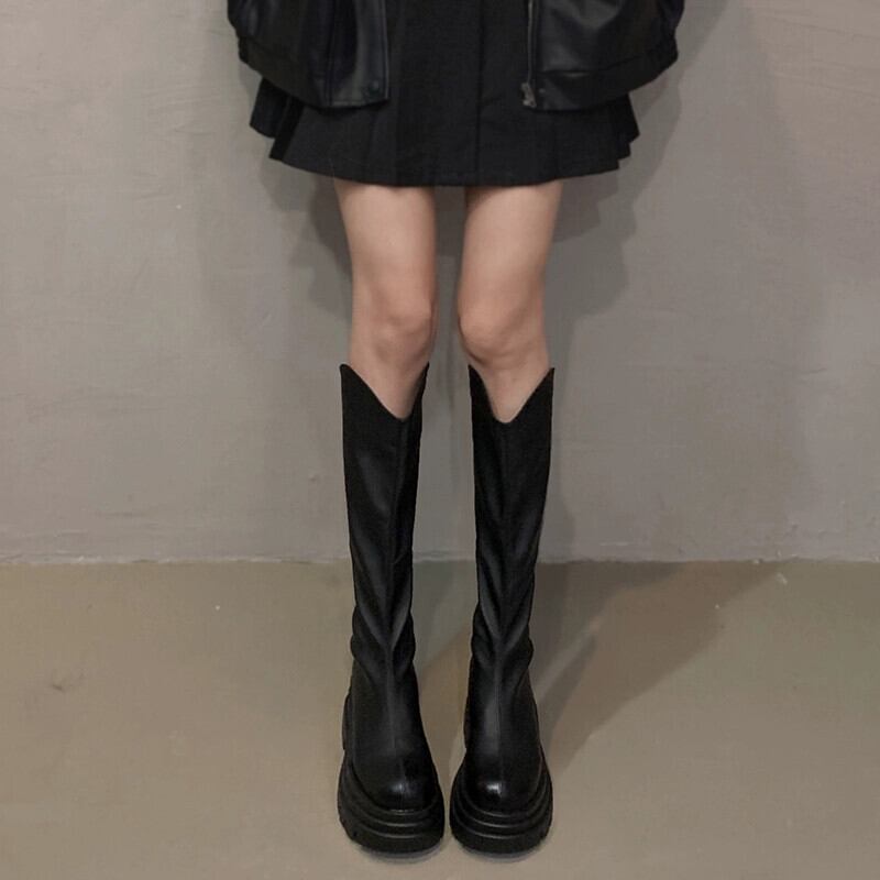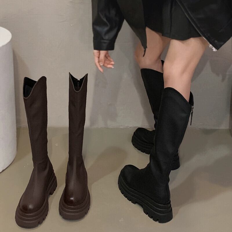 Jia Bufake ロングブーツ女性 2023 秋の新作超万能レトロハンサムリトル厚底ナイトブーツ 靴 シューズ オータム 秋物 jxjxf94956752847