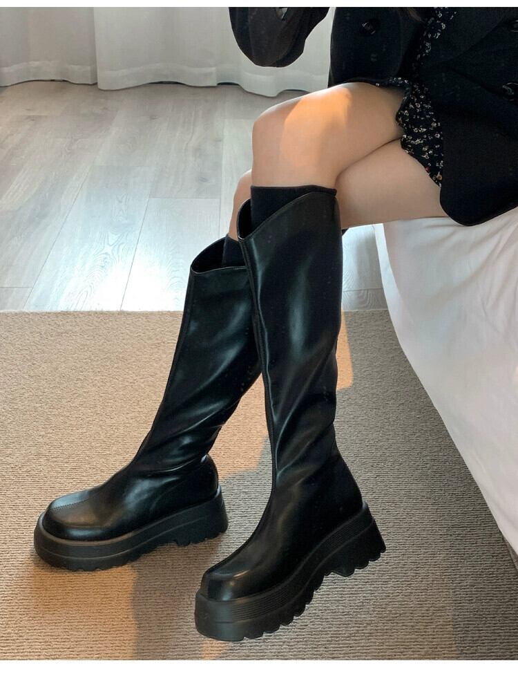 Jia Bujia ニーハイブーツの女性 2023 新しい秋レトロ多用途小型厚底ハンサムな騎士のブーツ 靴 シューズ オータム 秋物 jxjxf15898942596