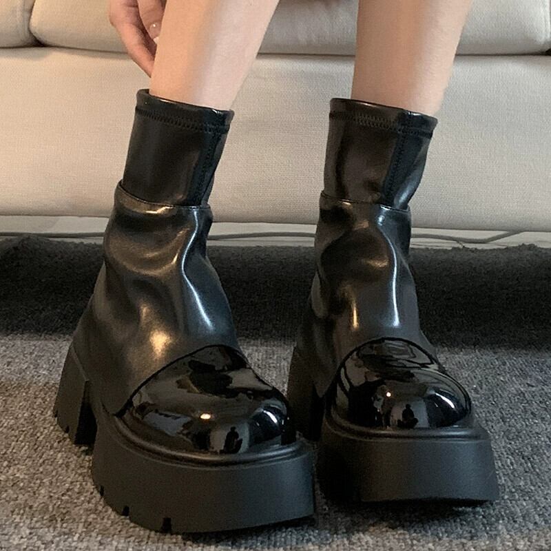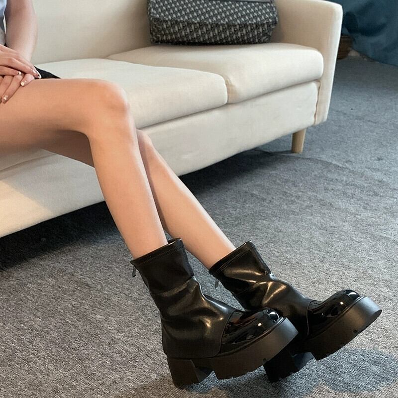 Jia Bufake ショートブーツ女性 2023 秋の新スタイルシンプルな気質レトロ高め小さな厚いヒールスリムブーツトレンディな 靴 シューズ オータム 秋物 jxjxf91871591829
