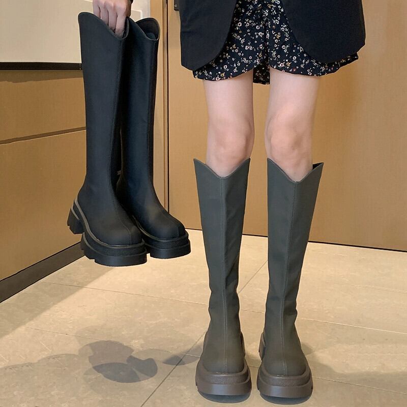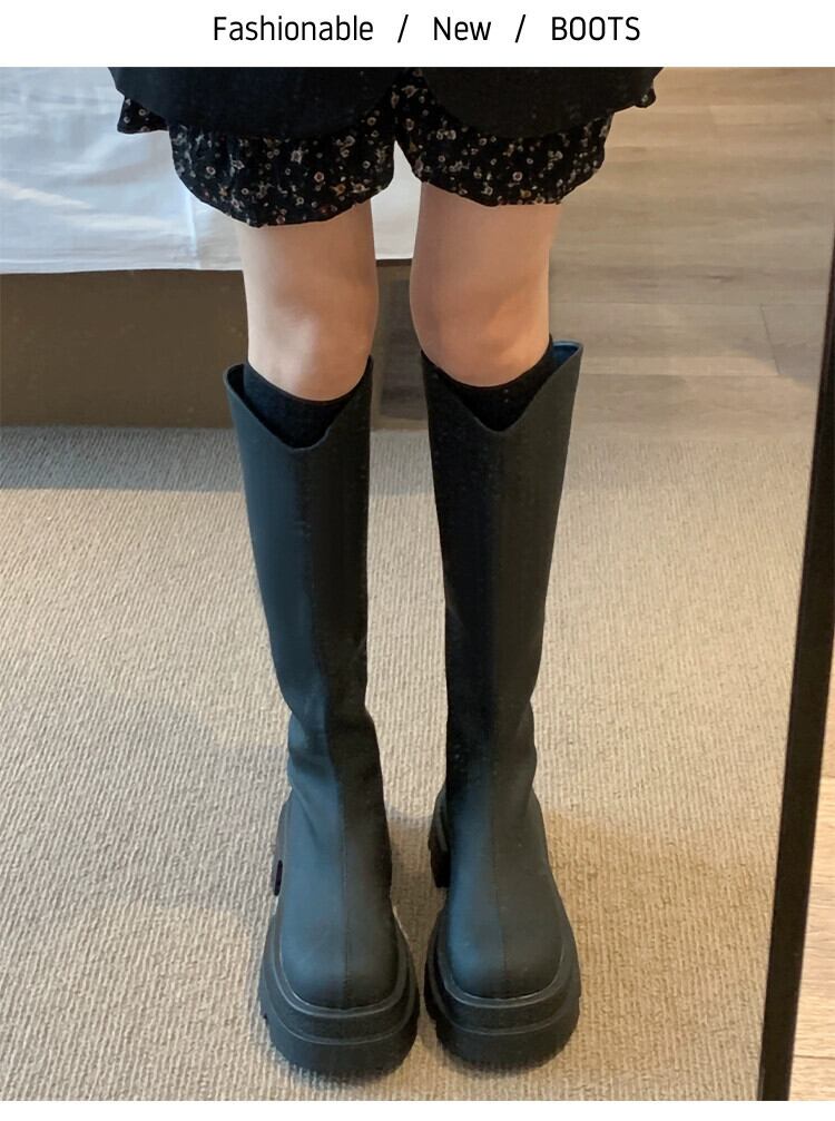 Jia Bujia 英国スタイルのブーツの女性 2023 新しい秋のファッションレトロハンサム太いヒール膝騎士ブーツ以上ではない 靴 シューズ オータム 秋物 jxjxf91167318683