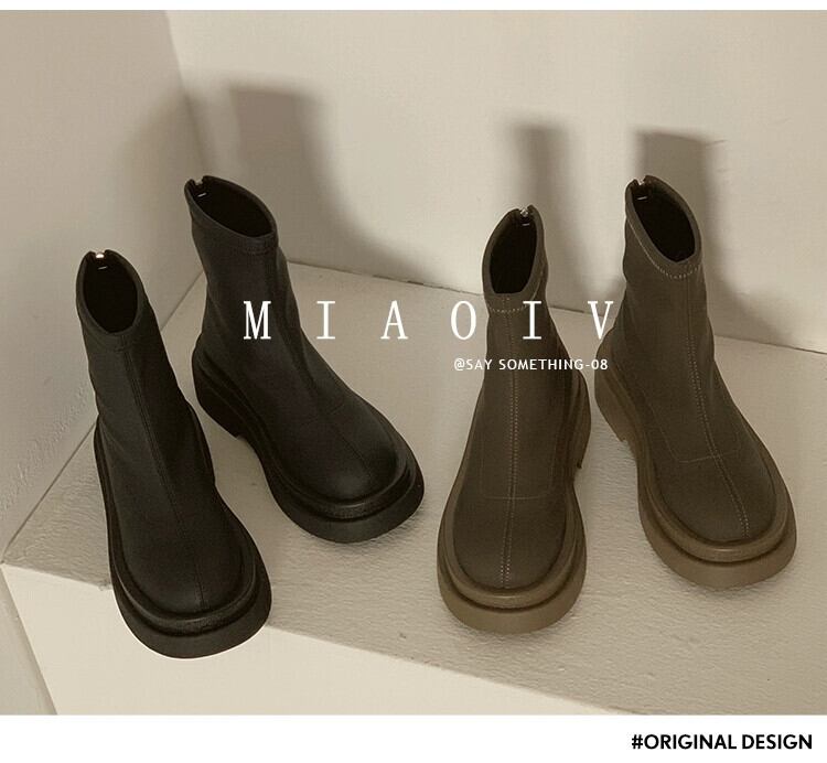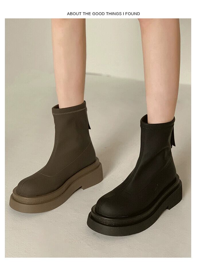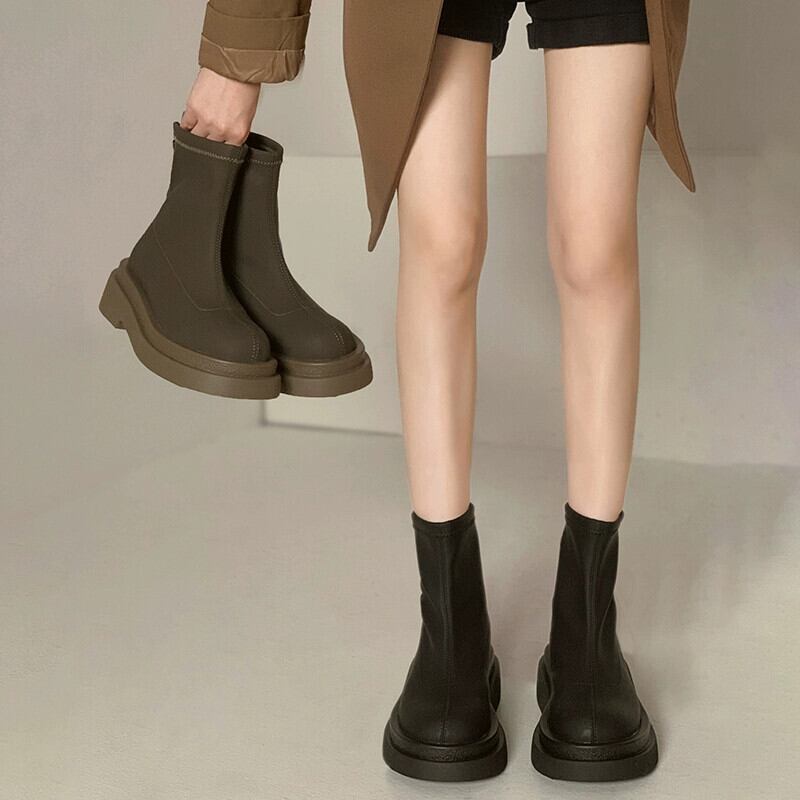 Jia Bujia ブーツ レディース ショートブーツ 2023 秋の新スタイルシンプルなレトロ comtable 厚底プラスベルベットスリムブーツトレンディ 靴 シューズ オータム 秋物 jxjxf3081825541