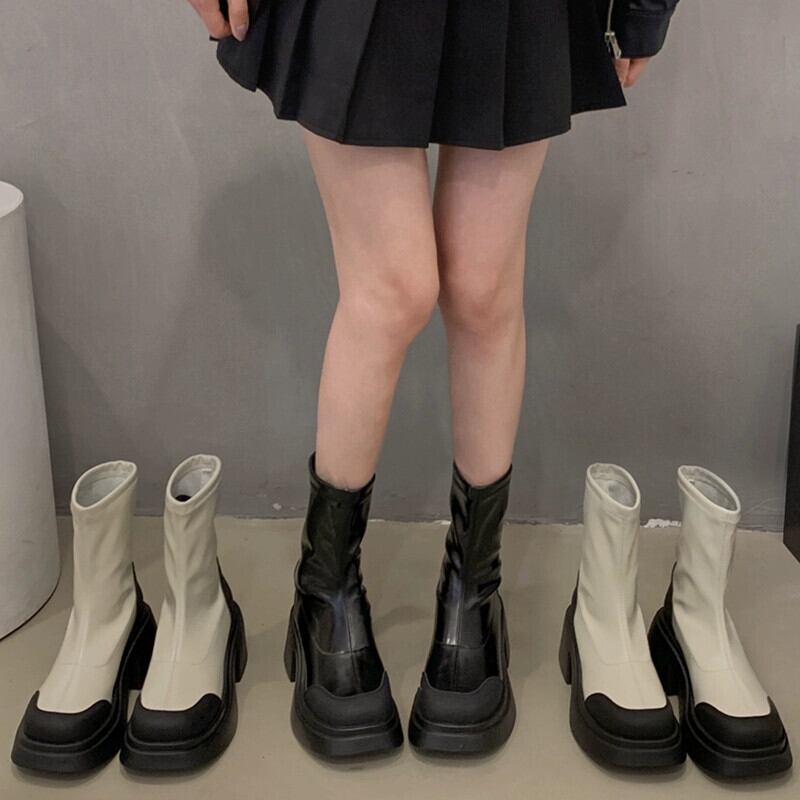 Jia Bujia フレンチショートブーツ女性 2023 秋の新ファッション多用途小型太いヒールファッショナブルなスリムブーツトレンド 靴 シューズ オータム 秋物 jxjxf15669720624