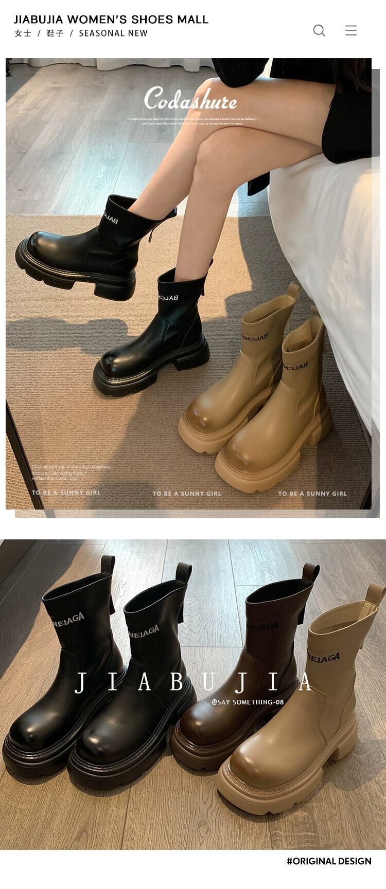 Jia Bujia レディース ショートブーツ 2023 秋多用途レトロハンサム小太ヒールスリムブーツ 靴 シューズ オータム 秋物 jxjxf84946643495