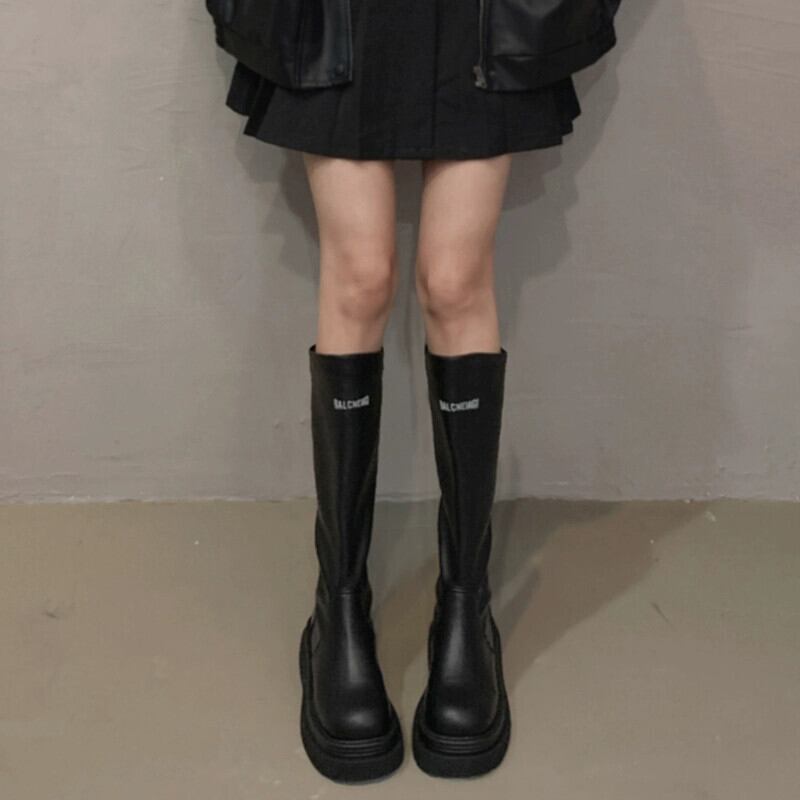 Jia Bujia 厚底騎士ブーツの女性、2023 秋のファッショナブルな気質、シンプルで多用途、快適、カジュアルでスリムなブーツ 靴 シューズ オータム 秋物 jxjxf13760786801