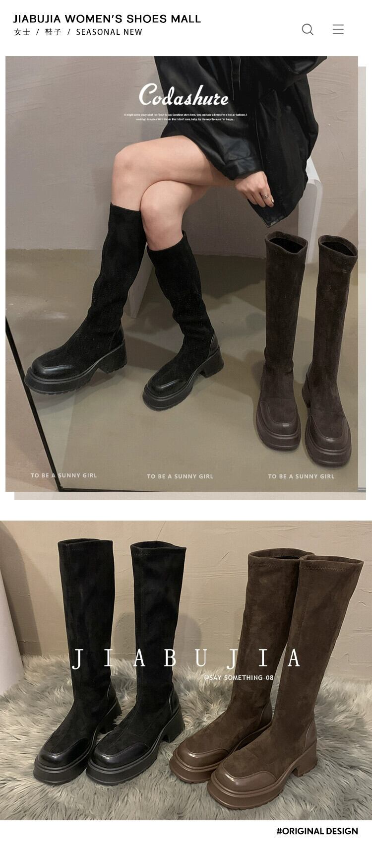 Jia Bujia ストレッチブーツの女性 2023 秋の新ファッション多用途スリムヒール太いヒール非落下スリムブーツトレンド 靴 シューズ オータム 秋物 jxjxf61910570719