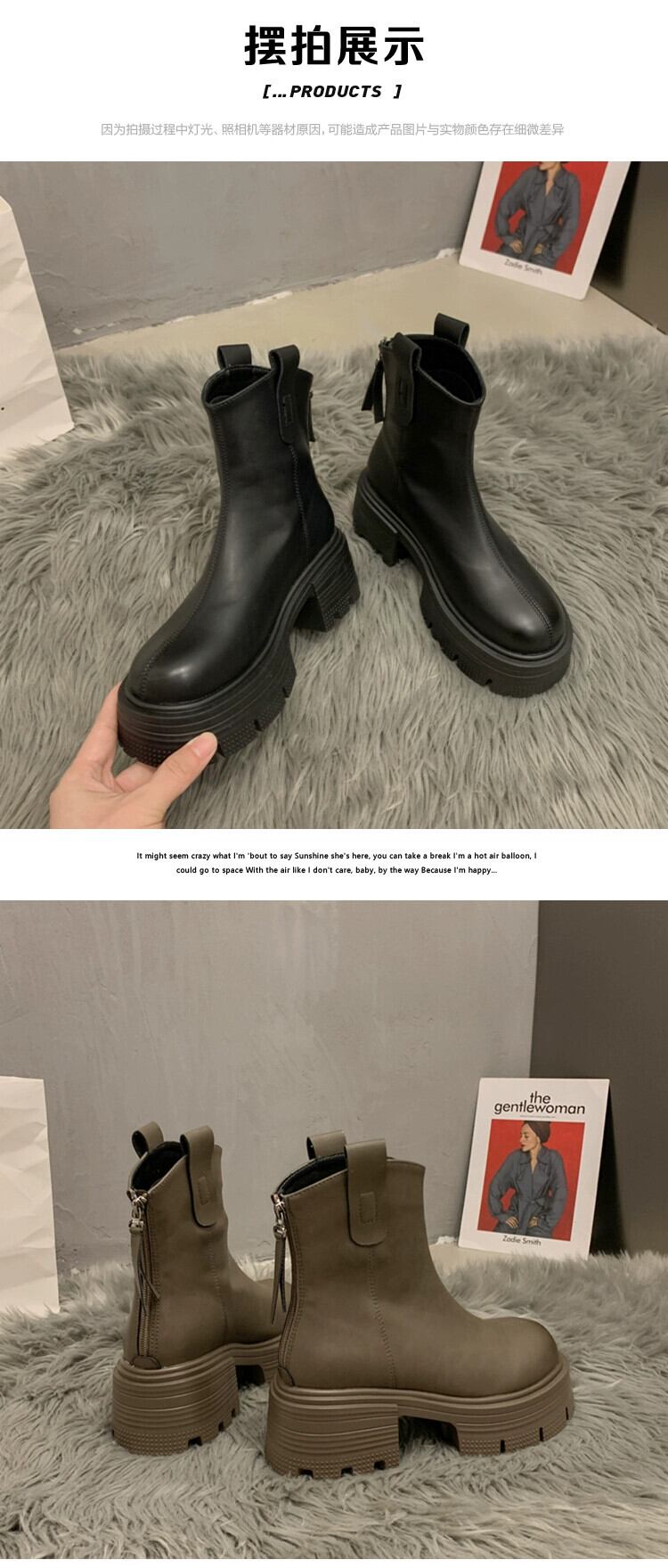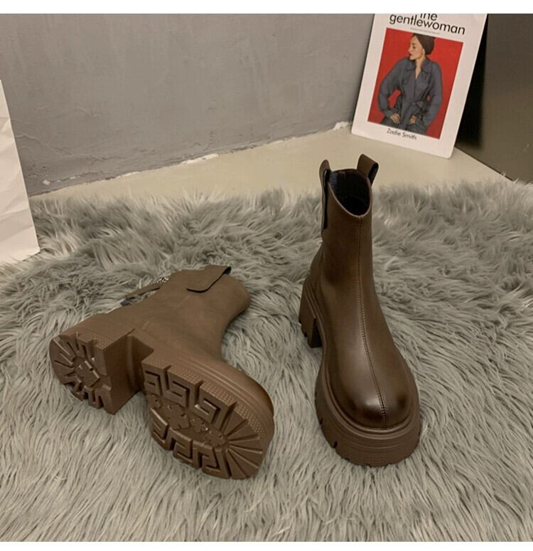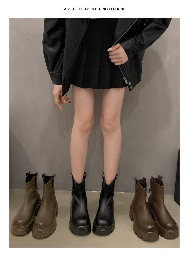 Jia Bufake ショートブーツ女性 2023 秋インターネット有名人レトロ多用途小型太いヒールオートバイスリムブーツ 靴 シューズ オータム 秋物 jxjxf63583847099