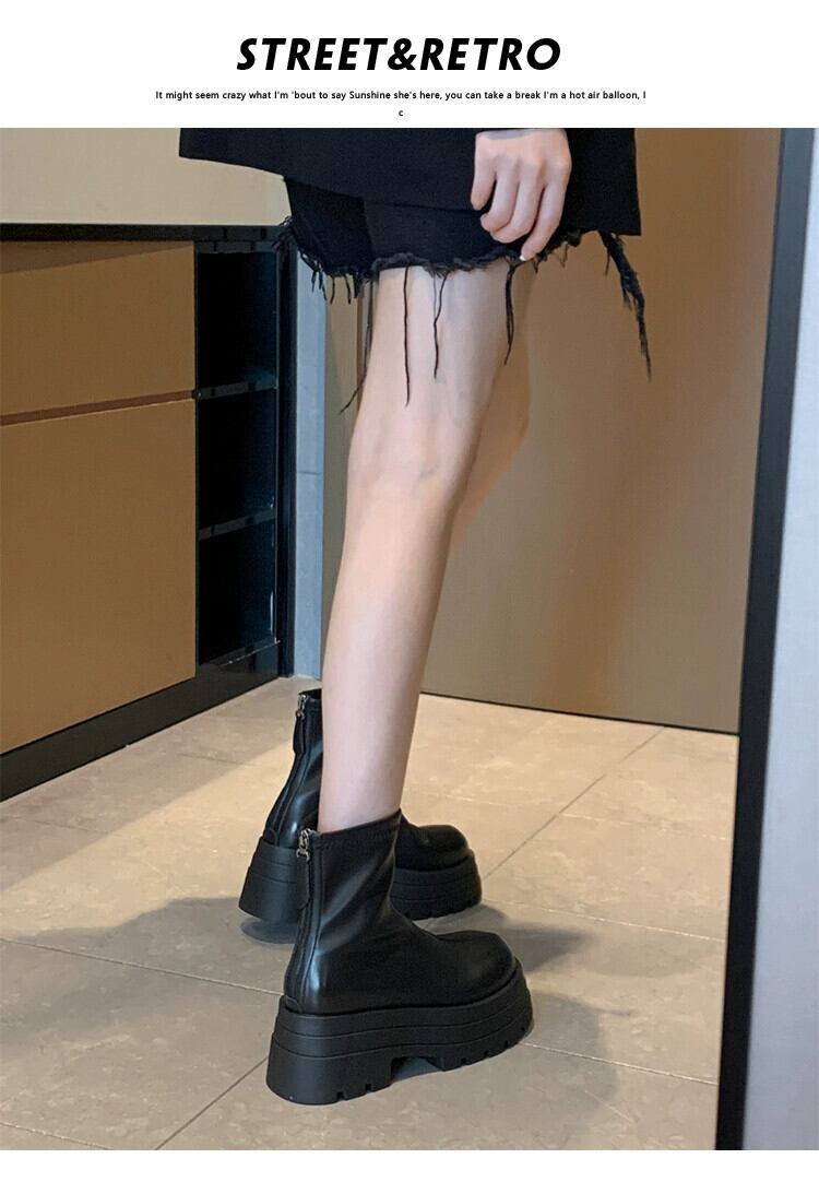 Jia Bujia インターネット有名人ショートブーツ女性 2023 秋の新作超多用途小型厚底ハンサムスリムブーツトレンディな 靴 シューズ オータム 秋物 jxjxf38878247392
