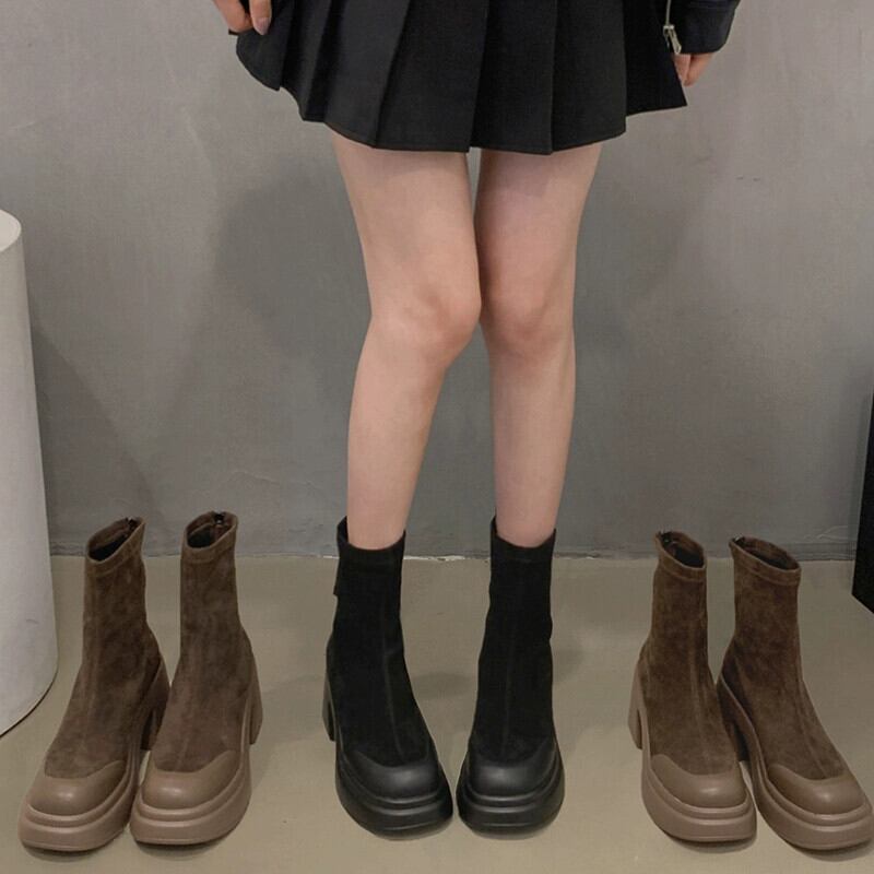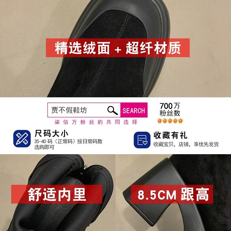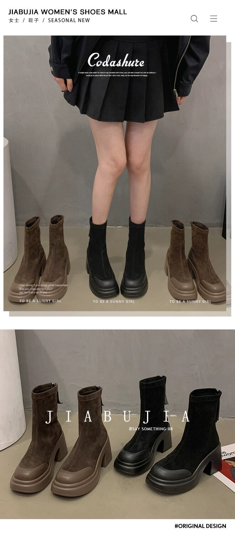 Jia Bujia レディースショートブーツ 2023 秋の新ファッション多用途レトロ厚いヒール eign スタイルフレンチスリムブーツトレンド 靴 シューズ オータム 秋物 jxjxf74299269919