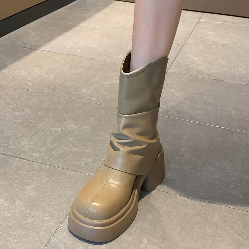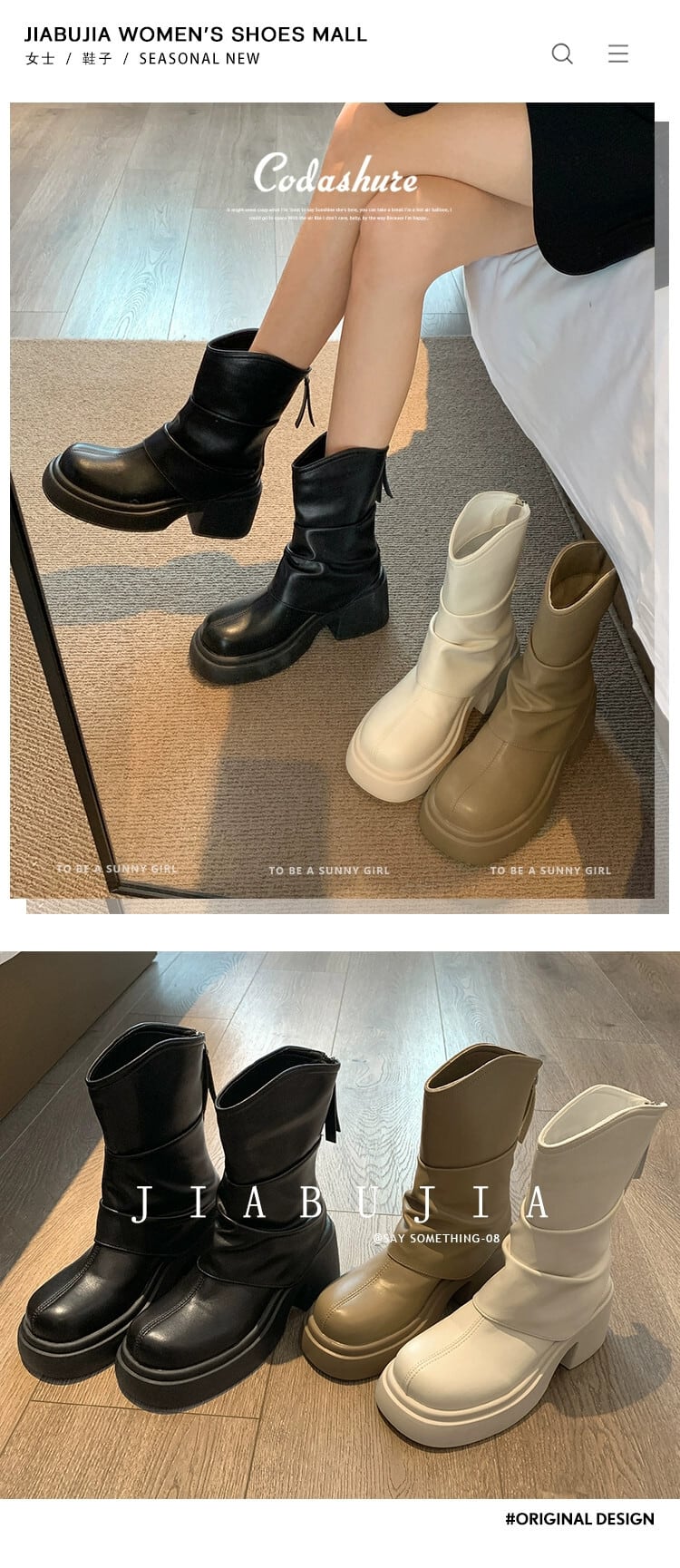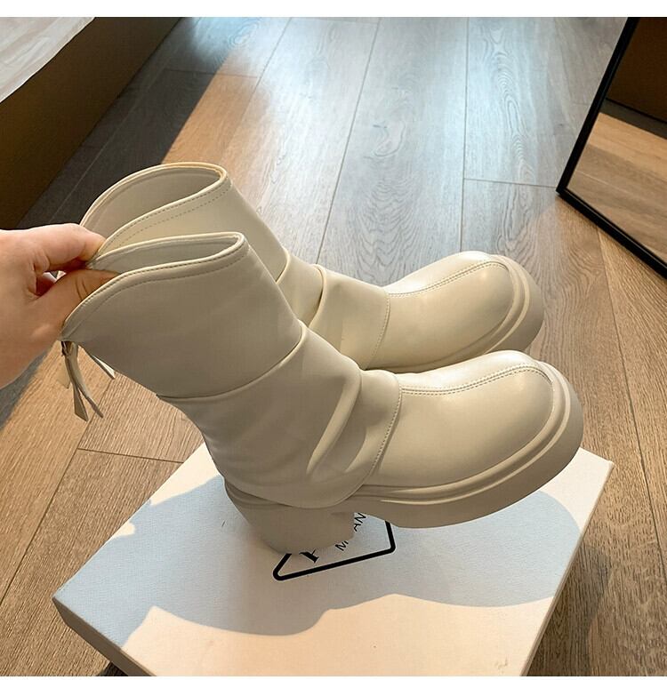 Jia Bujia インターネット有名人ショートブーツ女性 2023 秋の新超多用途レトロオートバイ太いヒールストリートパンツブーツ 靴 シューズ オータム 秋物 jxjxf77467158442
