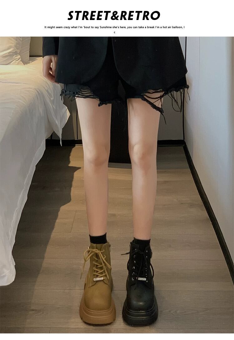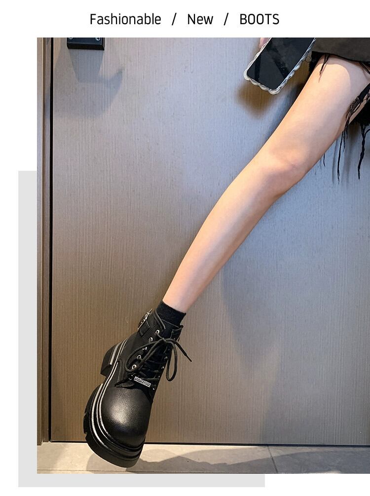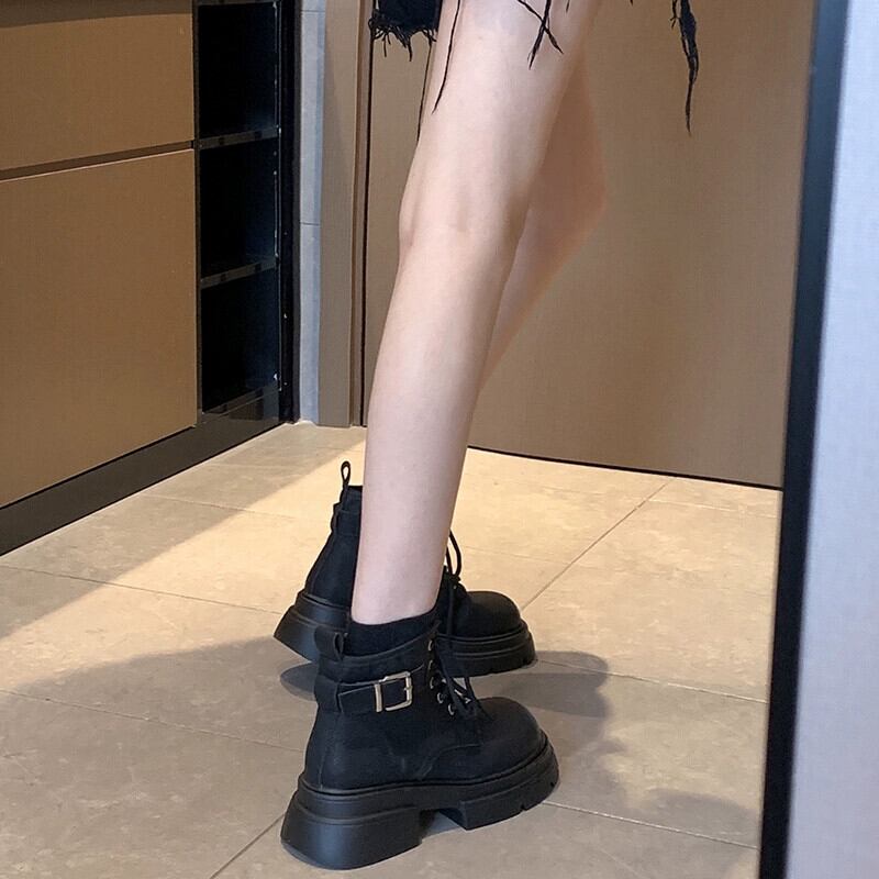 Jia Bujia インターネット有名人ショートブーツ女性 2023 秋の新ファッション多用途レトロオートバイ厚底ストリートマーティンブーツ 靴 シューズ オータム 秋物 jxjxf51563227057