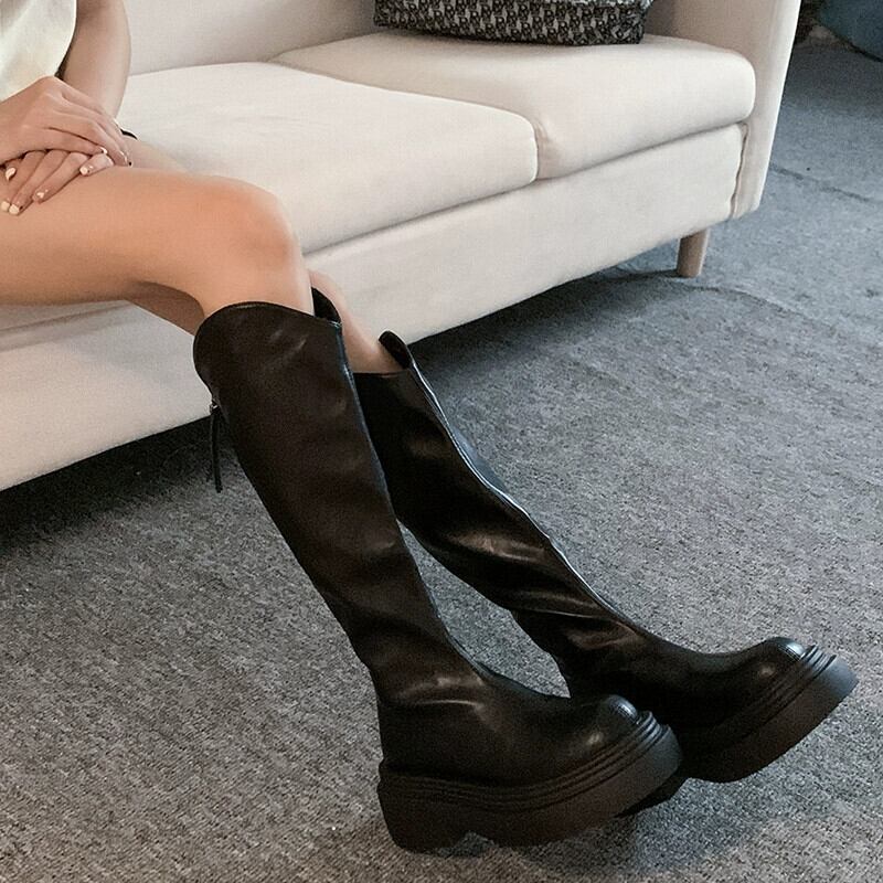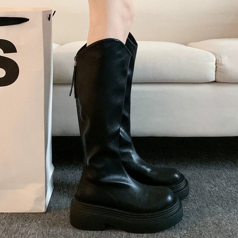 Jia Bujia レディースブーツ 2023 秋の新スタイルレトロ気質スリムファッション多用途厚底ナイトブーツ 靴 シューズ オータム 秋物 jxjxf11588862753