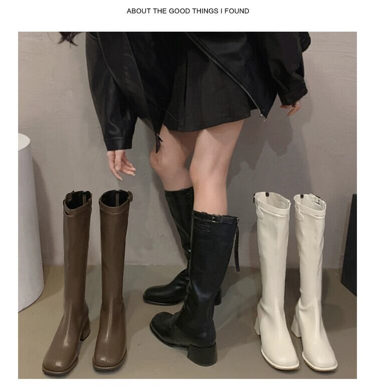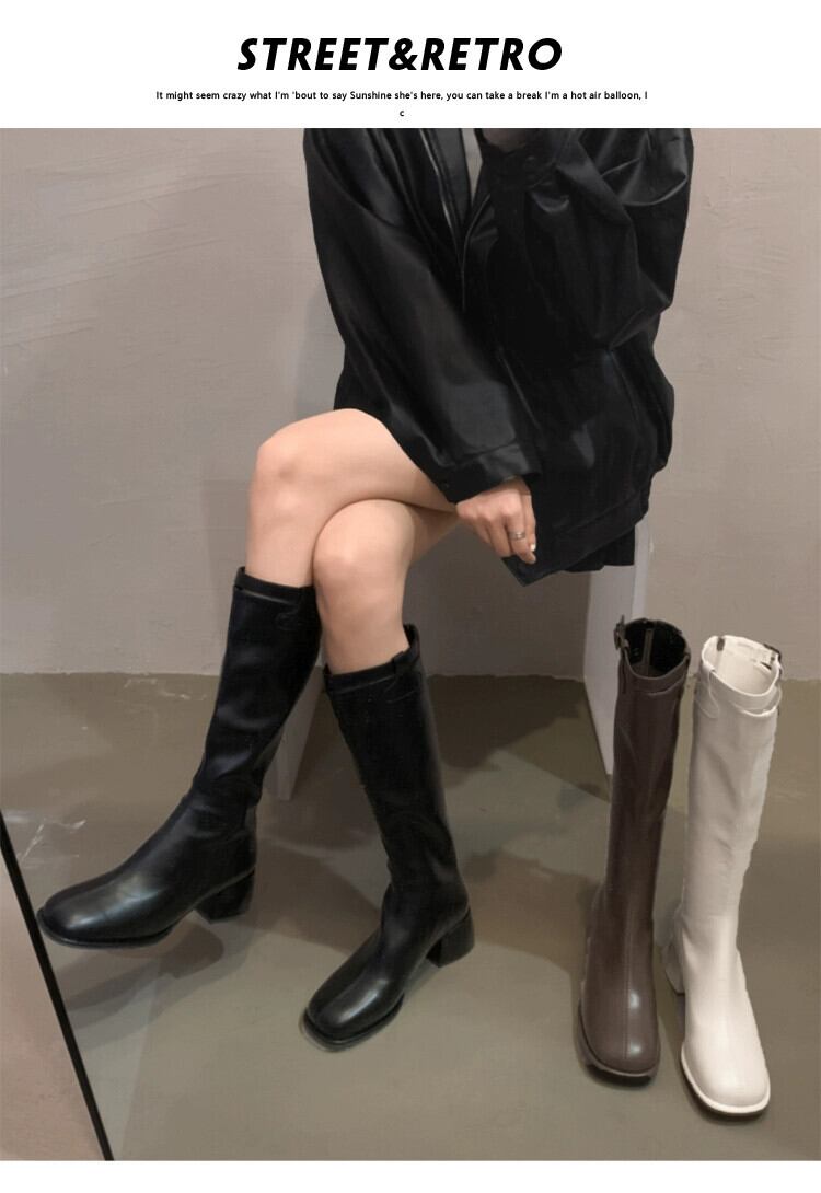 Jia Bujia ブーツの女性のブーツ 2023 秋の新ファッション多用途小型太いヒールフレンチスリムブーツトレンディな 靴 シューズ オータム 秋物 jxjxf48631866463