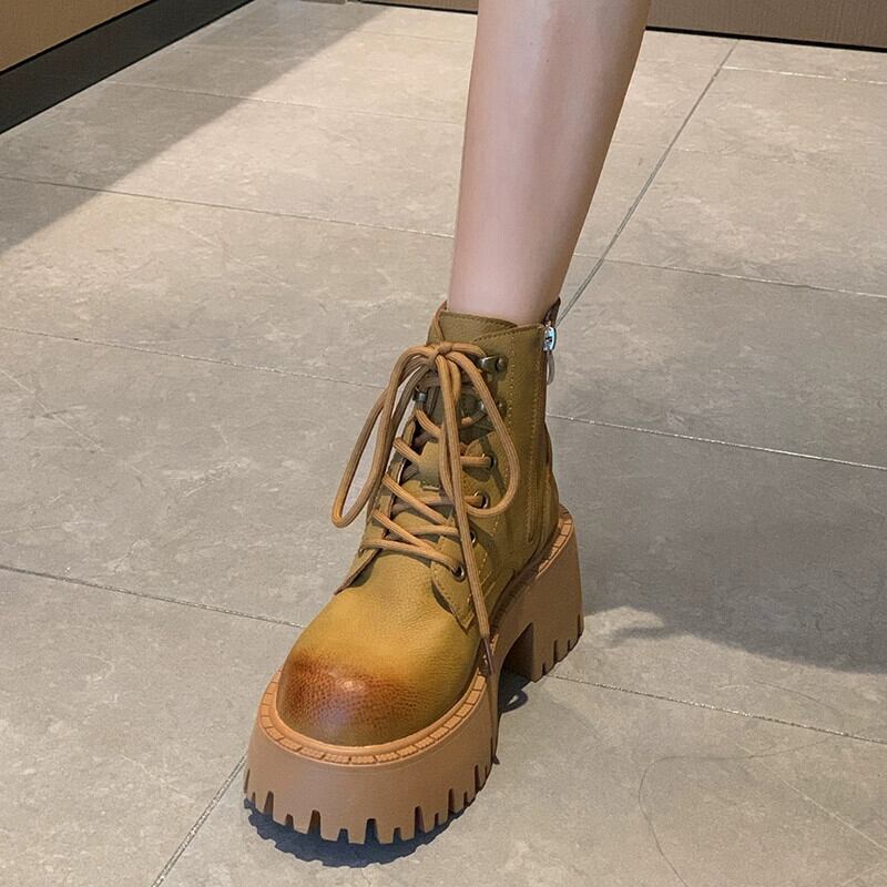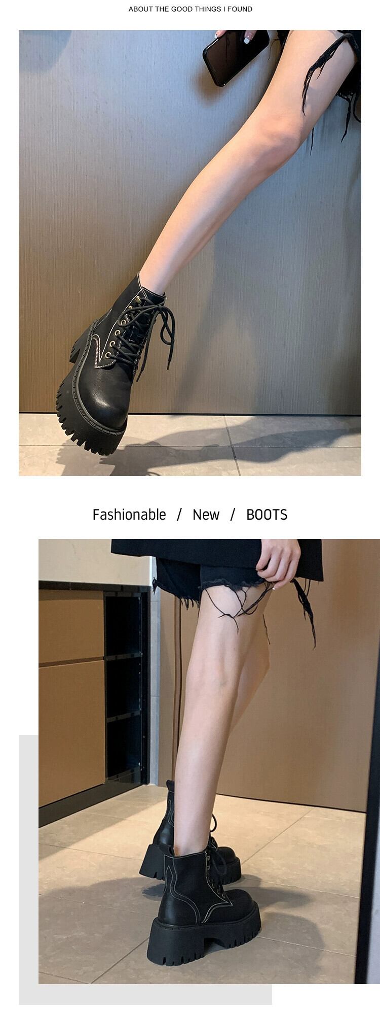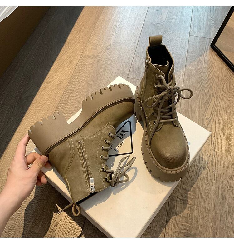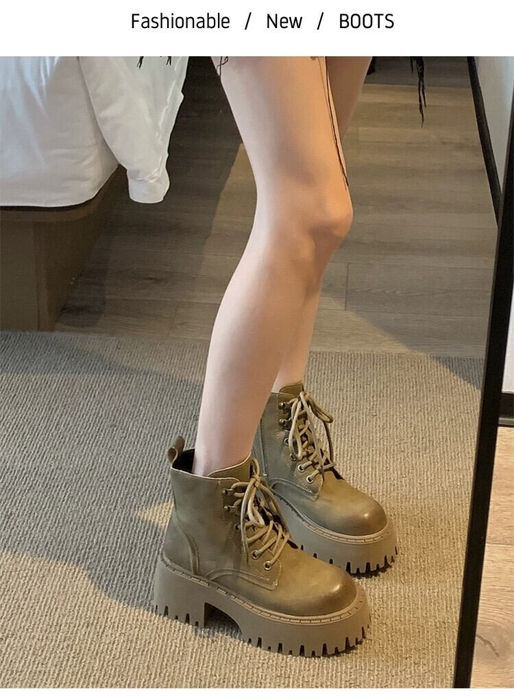 Jia Bujia 厚底マーティンブーツの女性 2023 秋の新スタイルスーパーとハンサムなレトロオートバイストリートショートブーツトレンディな 靴 シューズ オータム 秋物 jxjxf32916233042