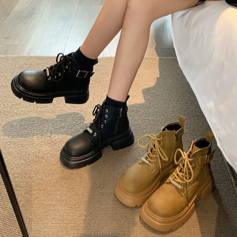 Jia Bufake マーティンブーツ女性の 2023 新秋レトロストリートスタイルアメリカンファッション太いヒールオートバイブーツ 靴 シューズ オータム 秋物 jxjxf47575853963
