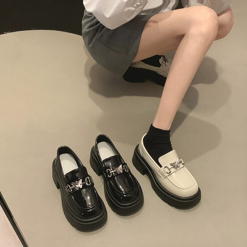 Jia Bujia 秋英国スタイルのローファー女性 2023 新ファッションレトロメタル高められる小さな革靴のトレンド シューズ オータム 秋物 レザー jxjxf12704943188