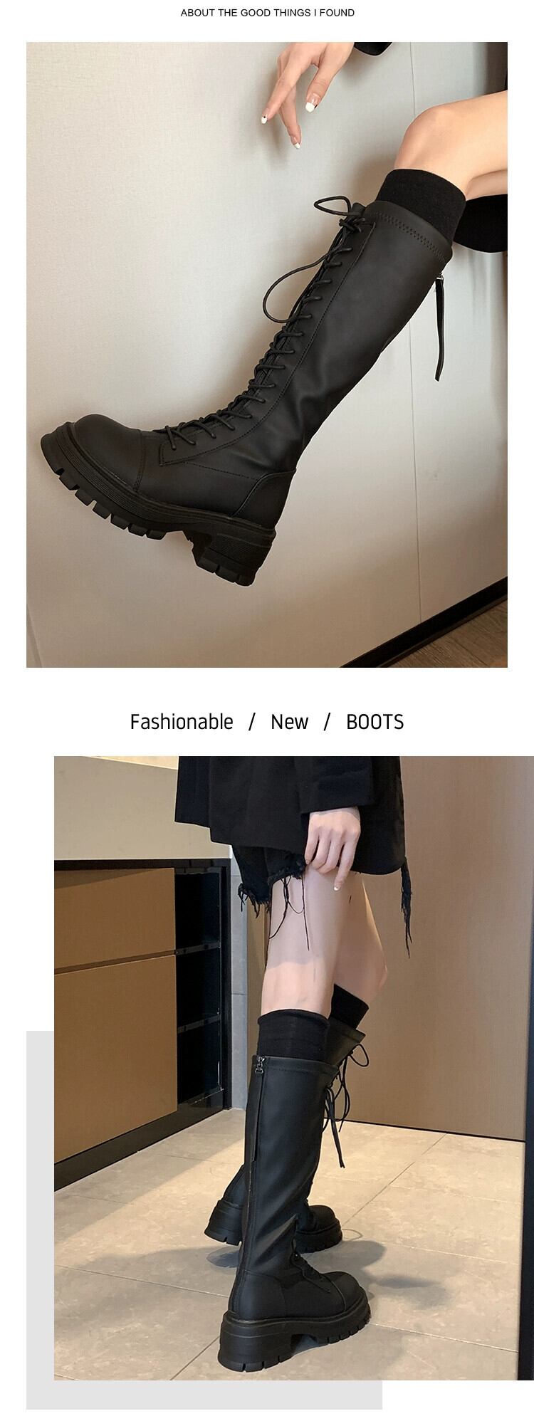 Jia Bujia 秋の騎士ブーツ レディース 2023 スタイル有能でハンサムなストリートブレイク厚底ノーニーレースアップブーツ 靴 シューズ オータム 秋物 jxjxf71850547412
