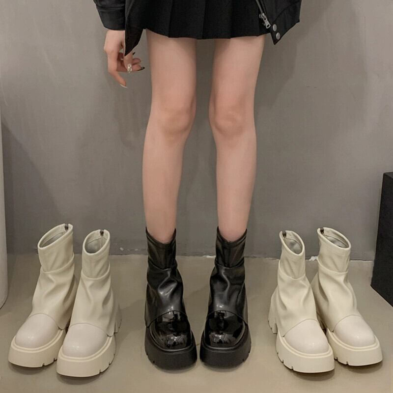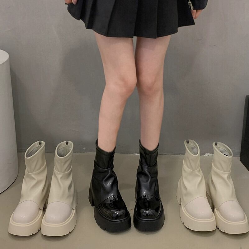 Jia Bujia 秋のショートブーツの女性 2023 新スタイルシンプルなファッショントレンド気質厚底カジュアルズボンブーツ 靴 シューズ オータム 秋物 jxjxf86512411691