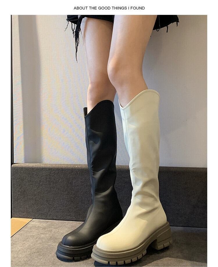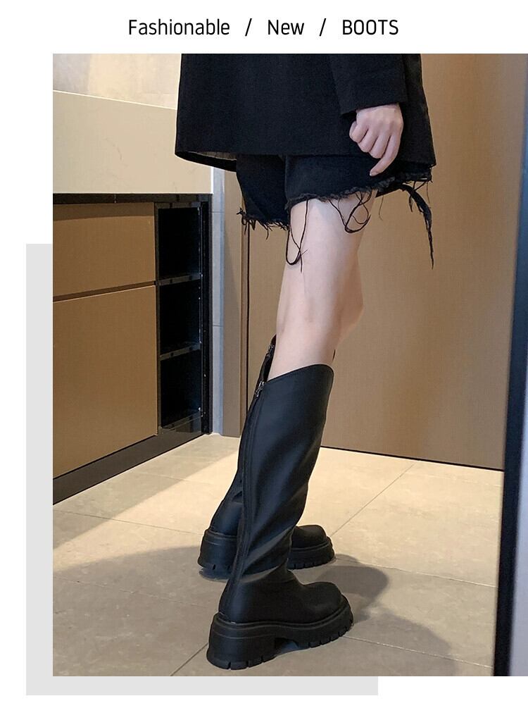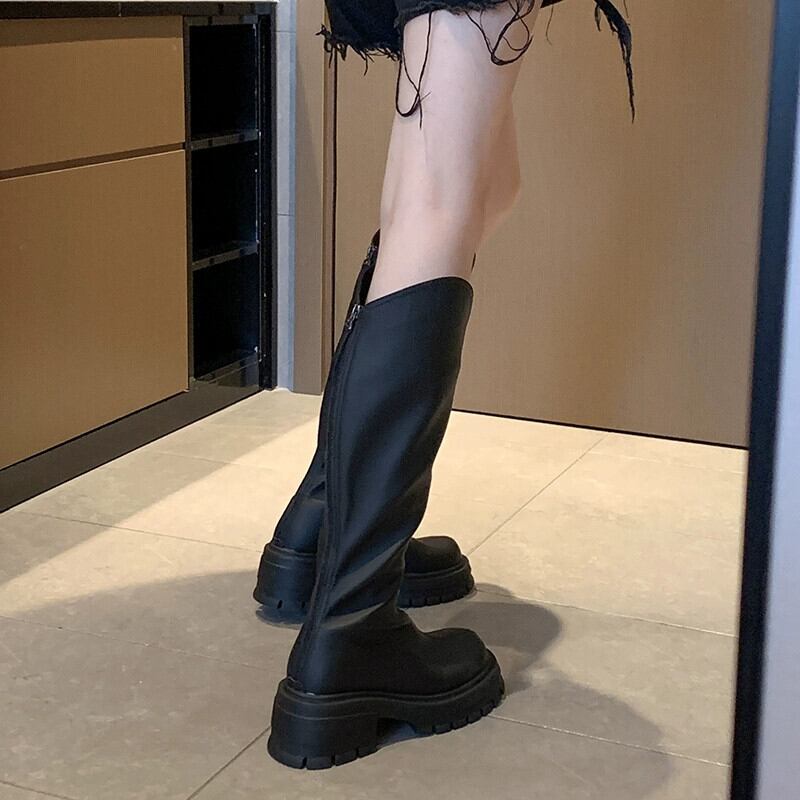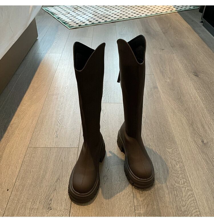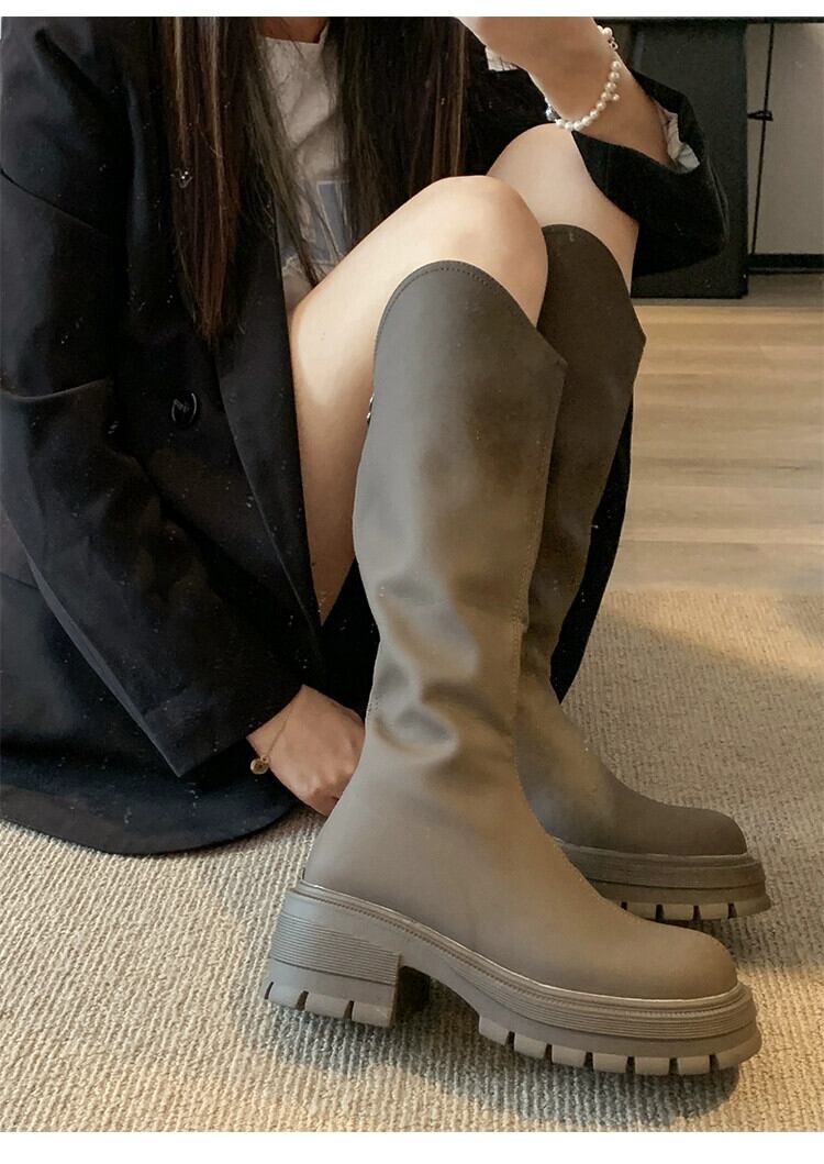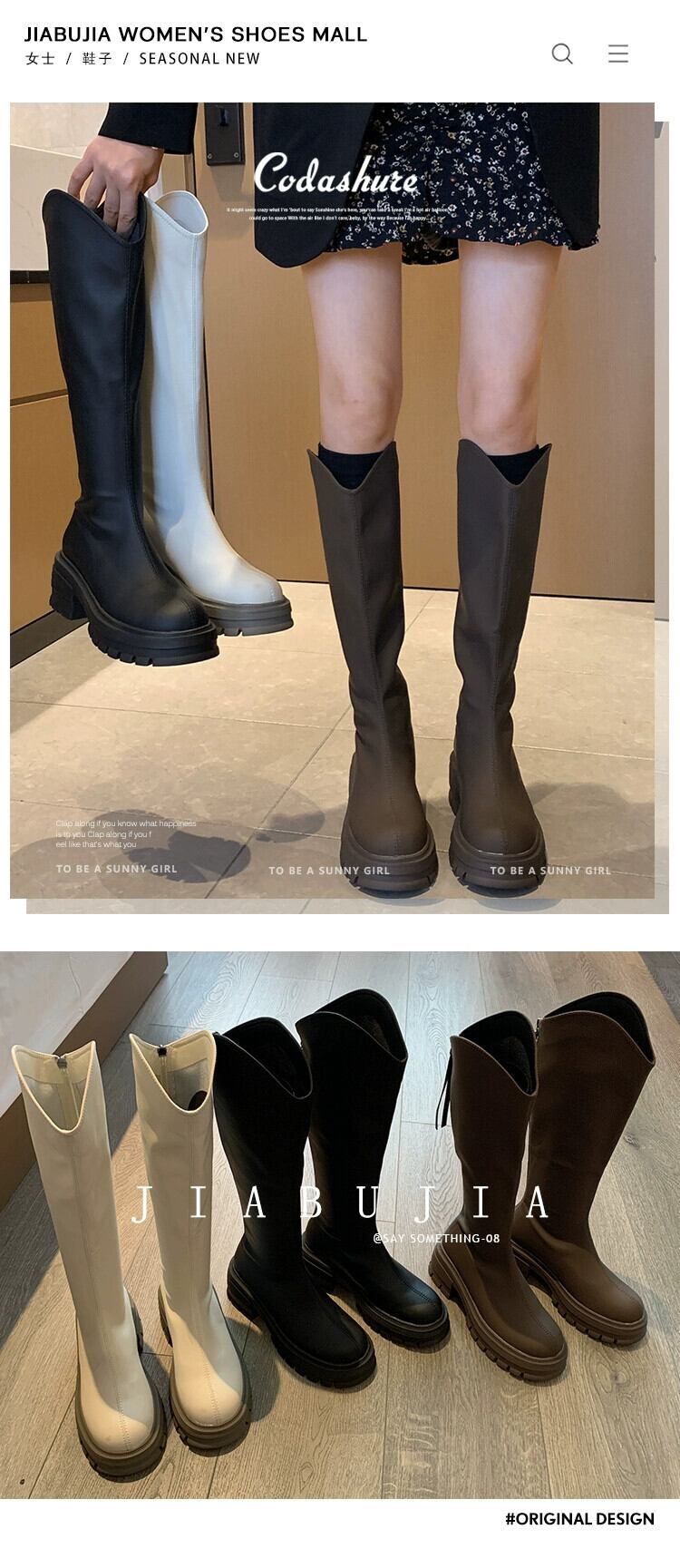 Jia Bujia 厚底ブーツの女性 2023 秋の新作ファッショナブルな気質快適なスリムレトロ騎士ブーツトレンド 靴 シューズ オータム 秋物 jxjxf50704863198