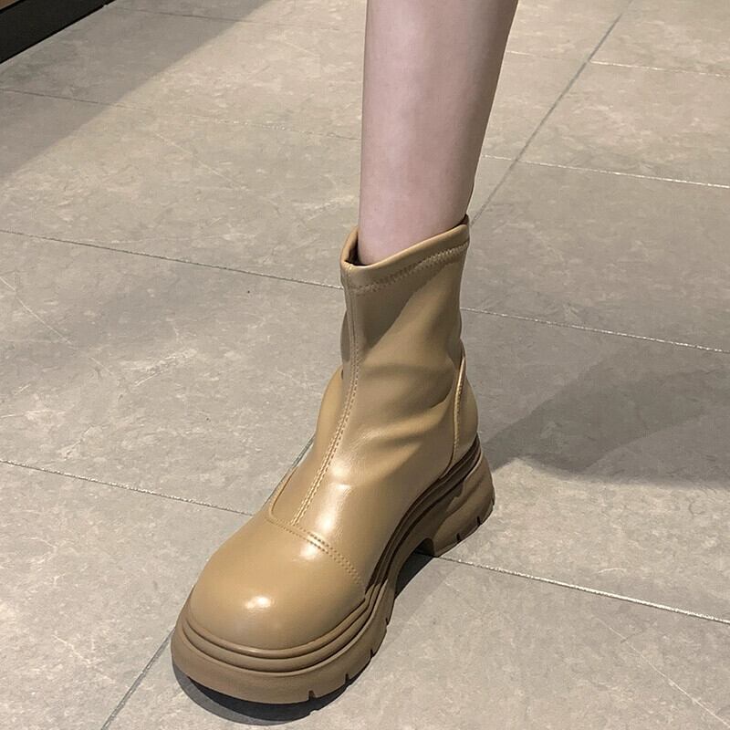 Jia Bujia インターネットセレブショートブーツ女性 2023 新しい秋のトレンド多用途レトロなスタイルのフランスの厚底スリムブーツ 靴 シューズ オータム 秋物 jxjxf84525980204