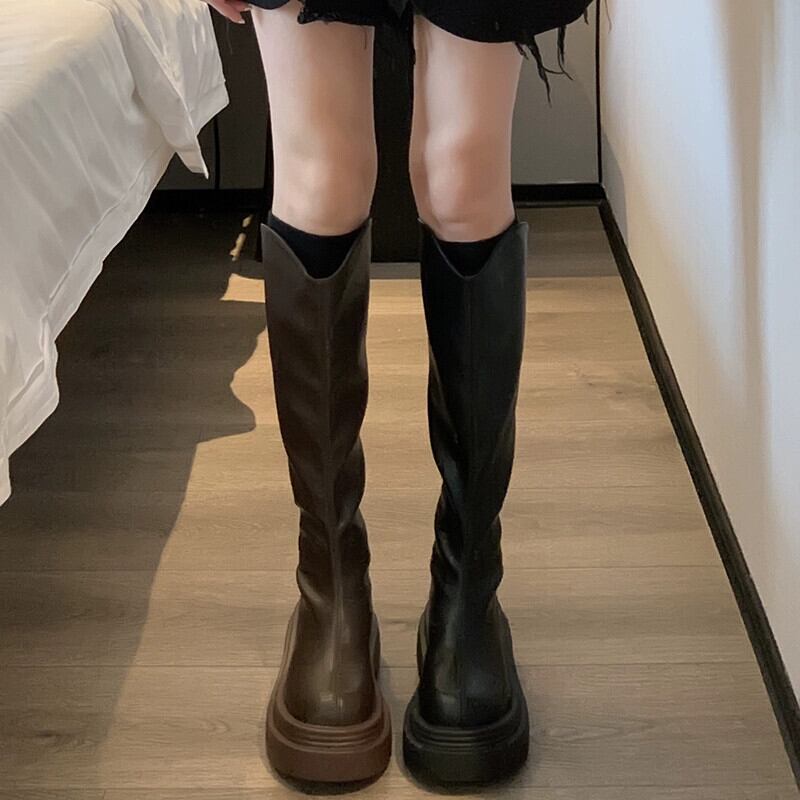 Jia Bufake ブーツの女性 2023 秋の新ファッション多用途レトロスリムとハンサム厚いヒールストリートナイトブーツ 靴 シューズ オータム 秋物 jxjxf20122250620