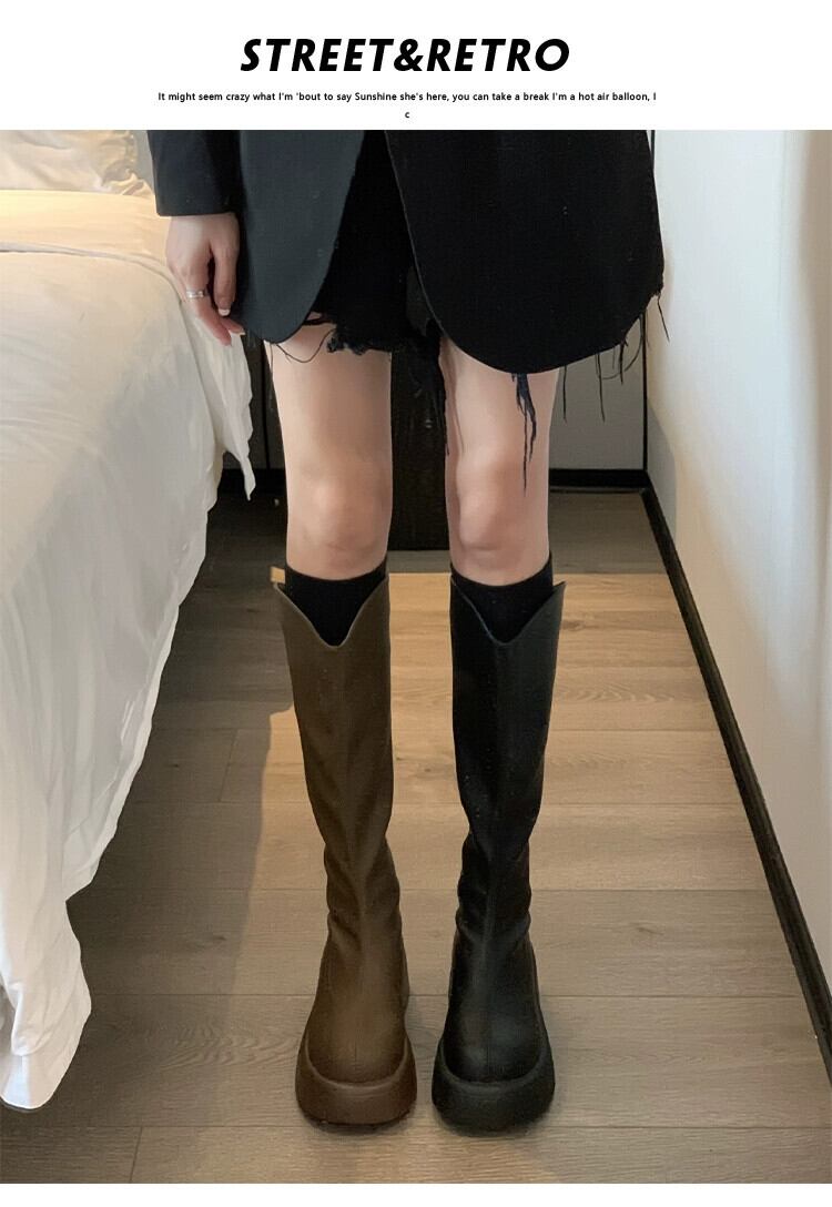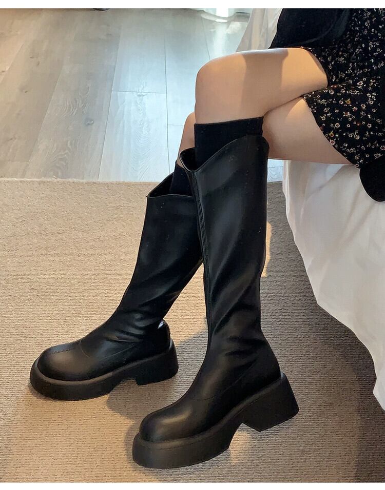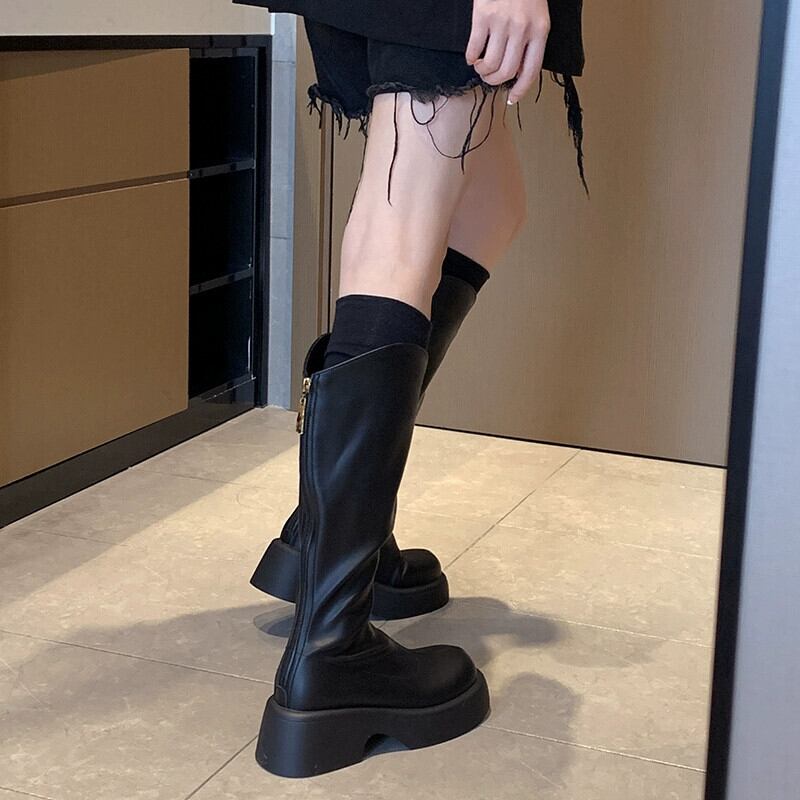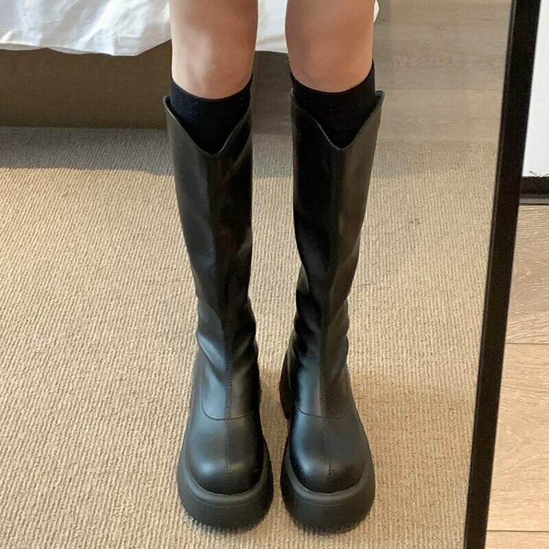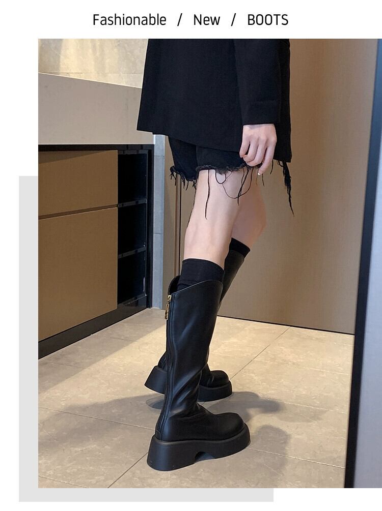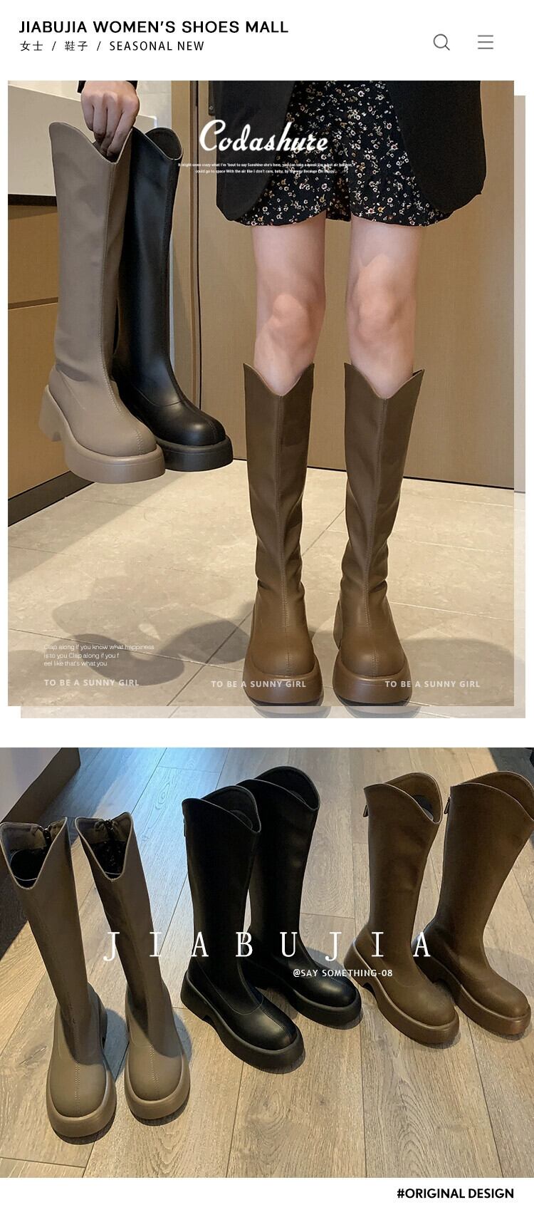 Jia Bujia ブーツ レディース ブーツ 2023 秋の新スタイルシンプルで多用途のファッション厚底スリムブーツのトレンドを高める 靴 シューズ オータム 秋物 jxjxf73397411715