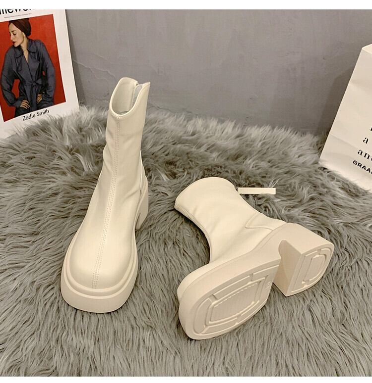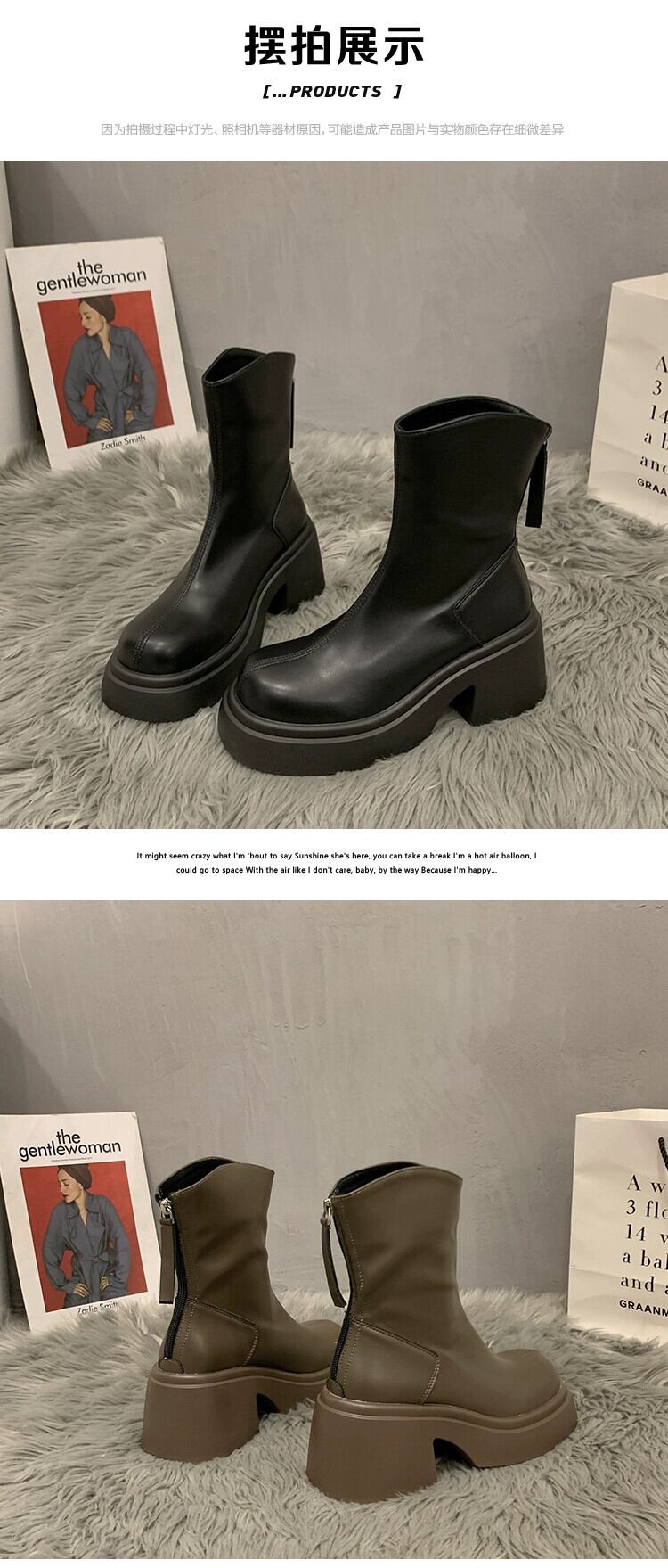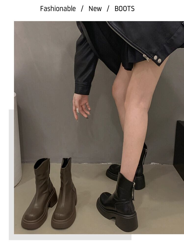 Jia Bujia ブーツ レディース ショートブーツ 2023 秋スタイルハンサムで多用途な小さな太いヒールレトロスリムブーツトレンディ 靴 シューズ オータム 秋物 jxjxf34540318516
