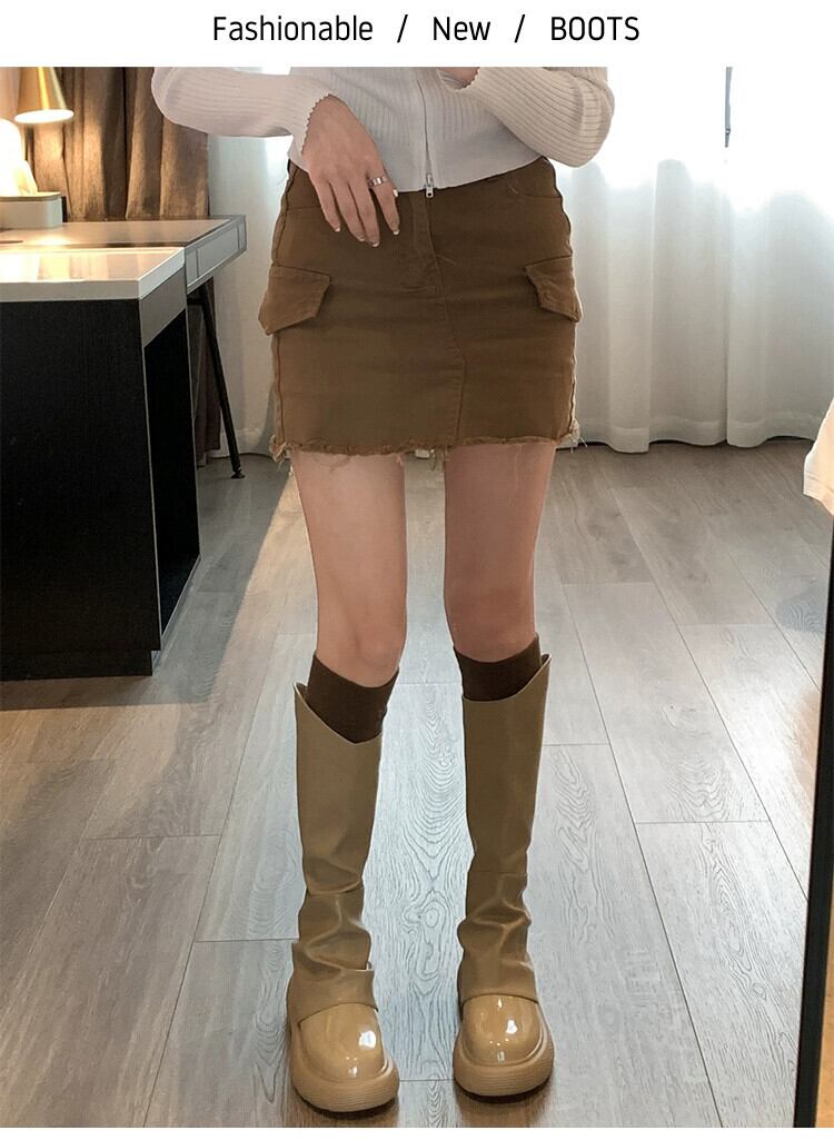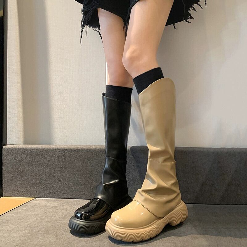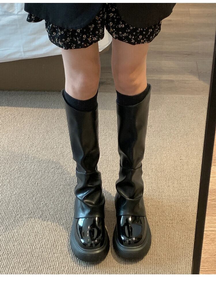 Jia Bujia のニーハイブーツの女性 2023 秋の新しいスタイルのインターネットセレブレトロハンサムな厚底ストリートパンツブーツトレンド 靴 シューズ オータム 秋物 jxjxf41939501514