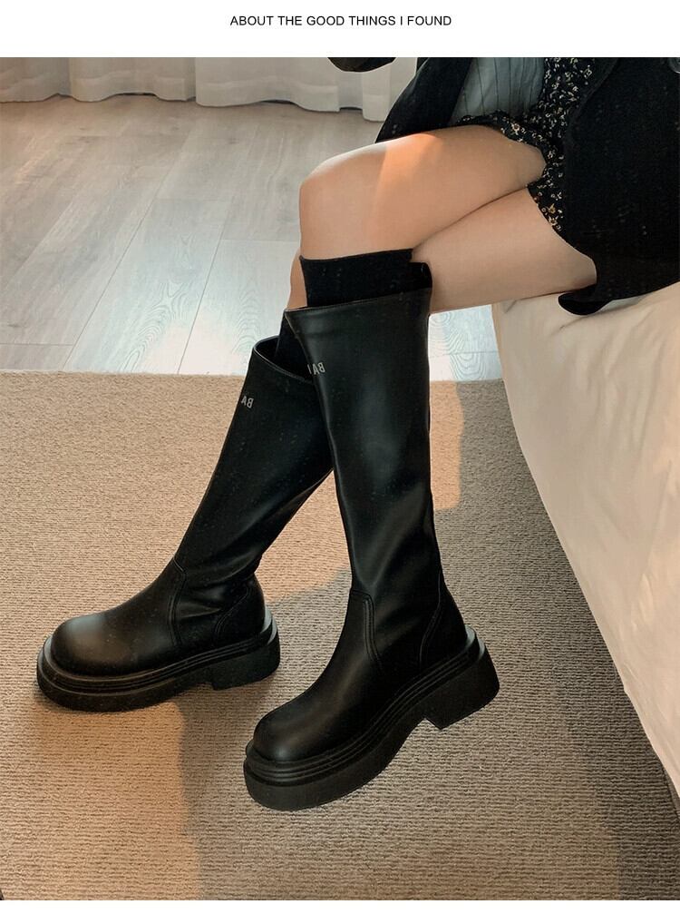 Jia Bujia レディースナイトブーツ 2023 秋の新スタイルファッショナブルなレトロ多用途厚底気質スリムブーツ 靴 シューズ オータム 秋物 jxjxf59782941408