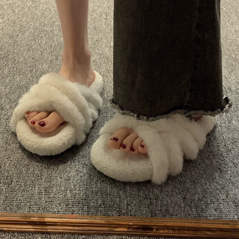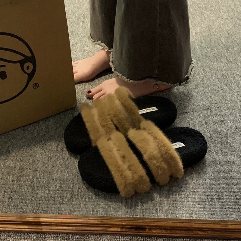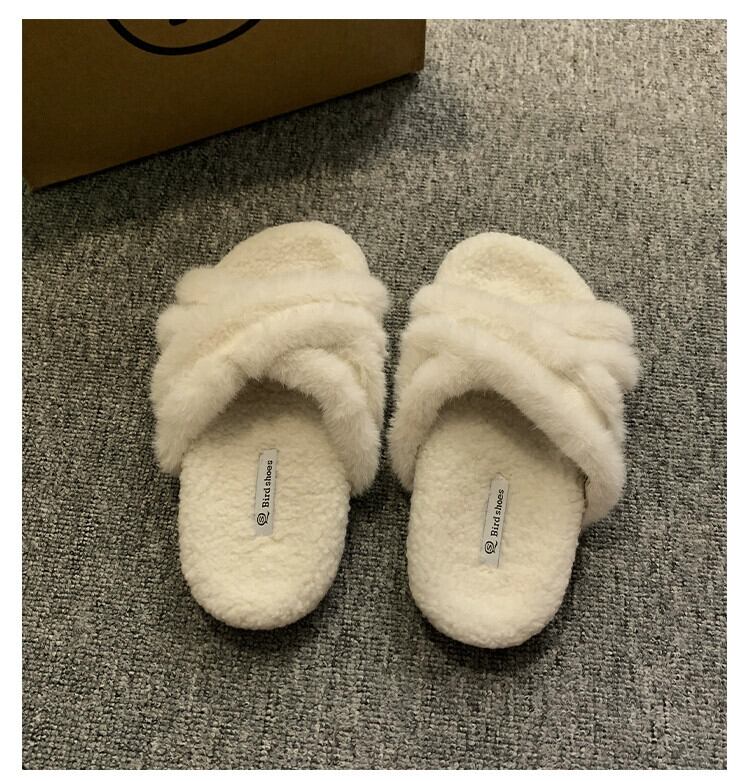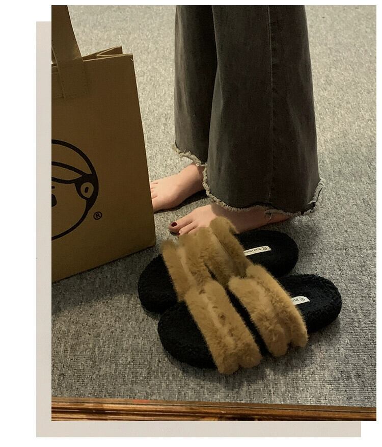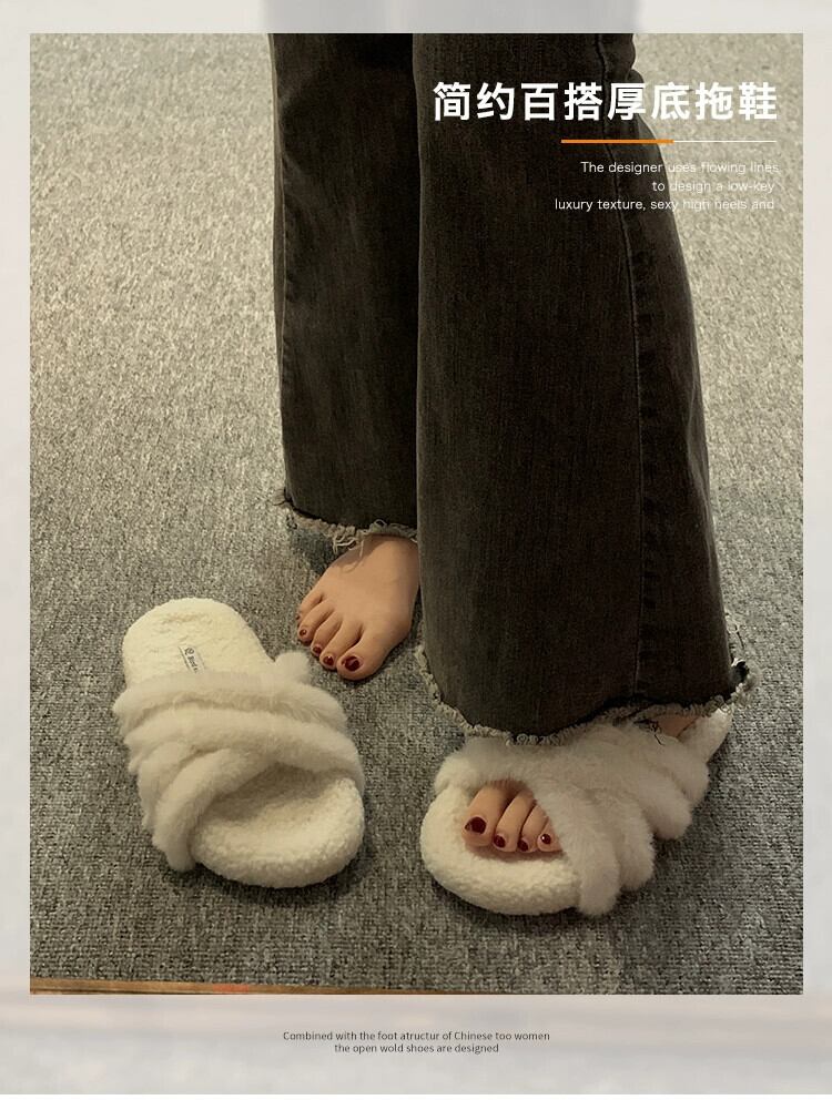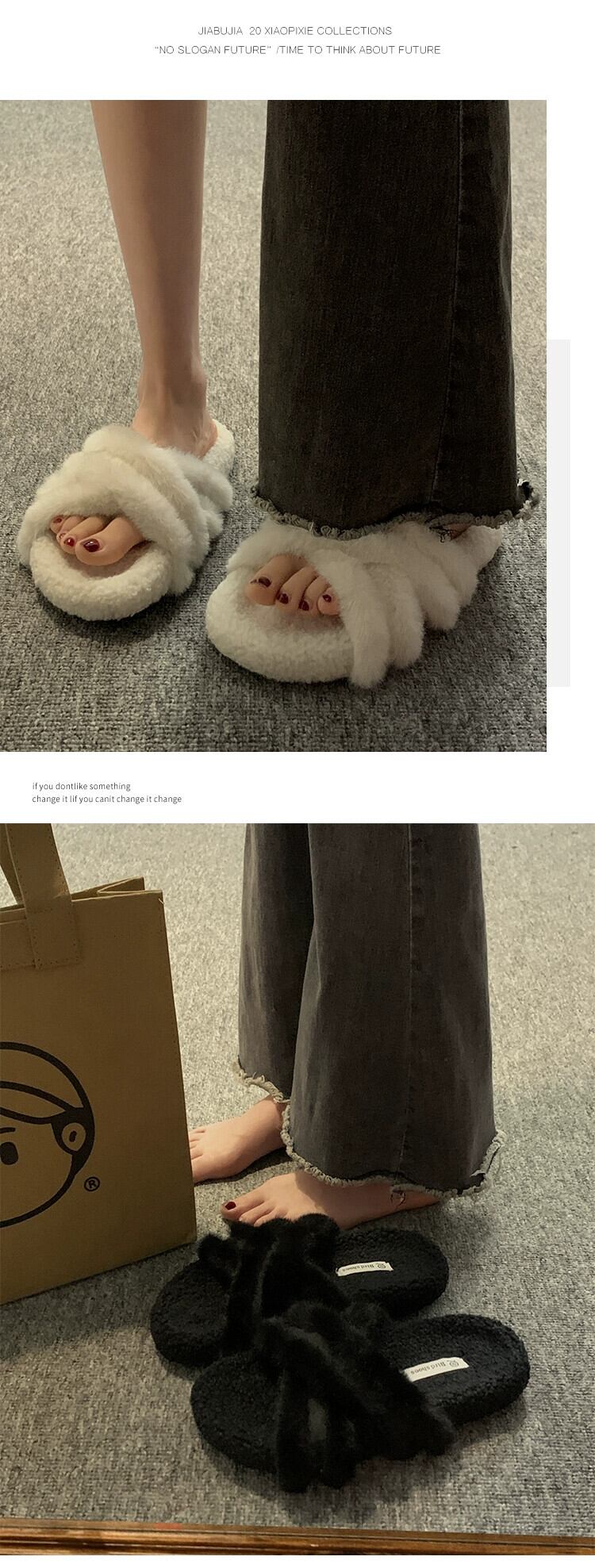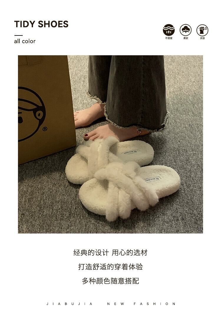 Jia Bufake スリッパ女性のアウターウェア 2023 新しい秋のファッションレトロクロス平底 comtable eign スタイル毛皮のようなスリッパ ミュール 靴 シューズ オータム 秋物 jxjxf19654671770