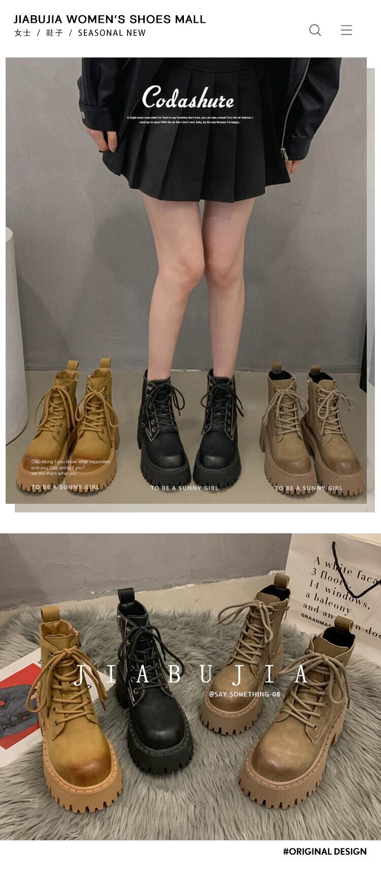 Jia Bufake ショートブーツ レディース 2023 秋トレンディ多用途小型ハンサム厚底ストリートマーティンブーツ 靴 シューズ オータム 秋物 jxjxf55337106905