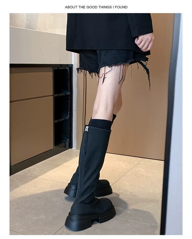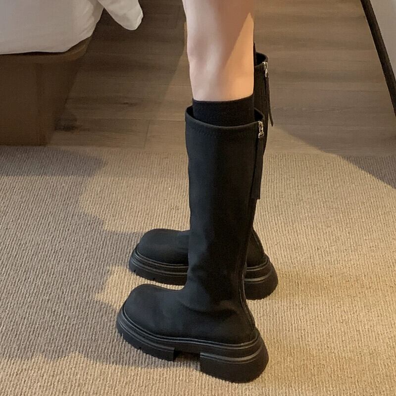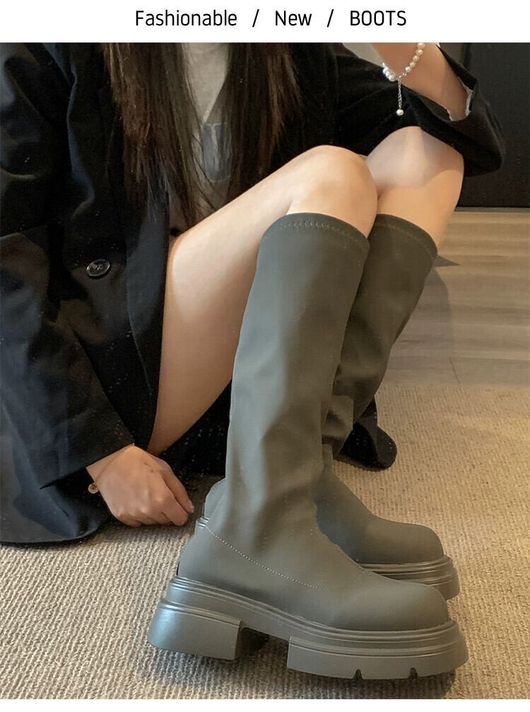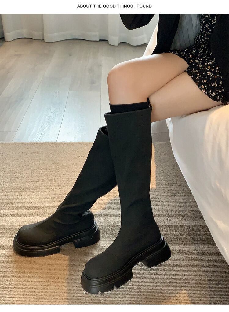Jia Bujia 膝上ブーツの女性 2023 秋の新レトロファッションシンプルな多用途厚底スリムブーツ 靴 シューズ オータム 秋物 jxjxf62393645816