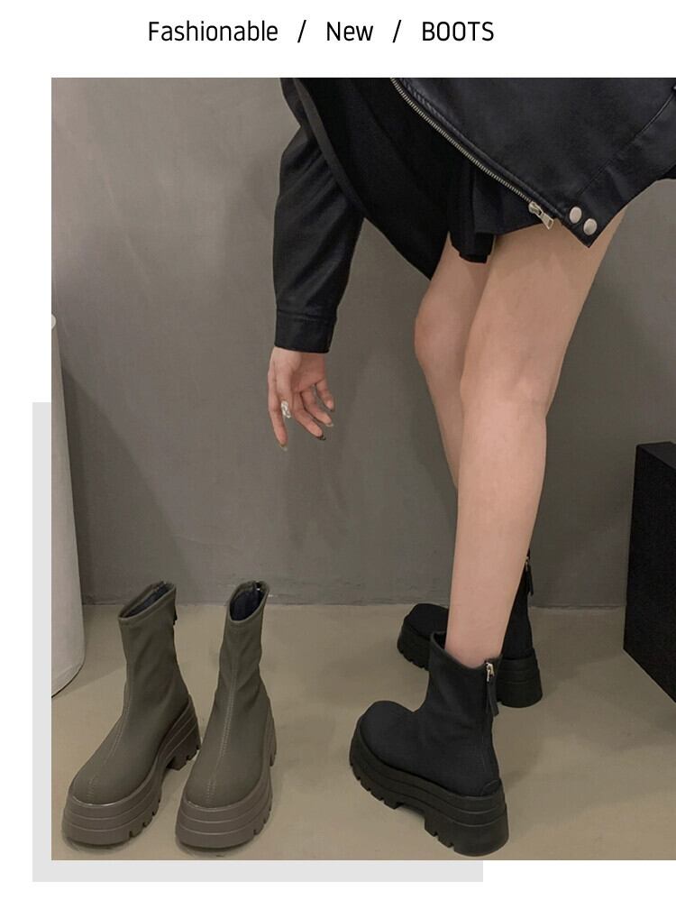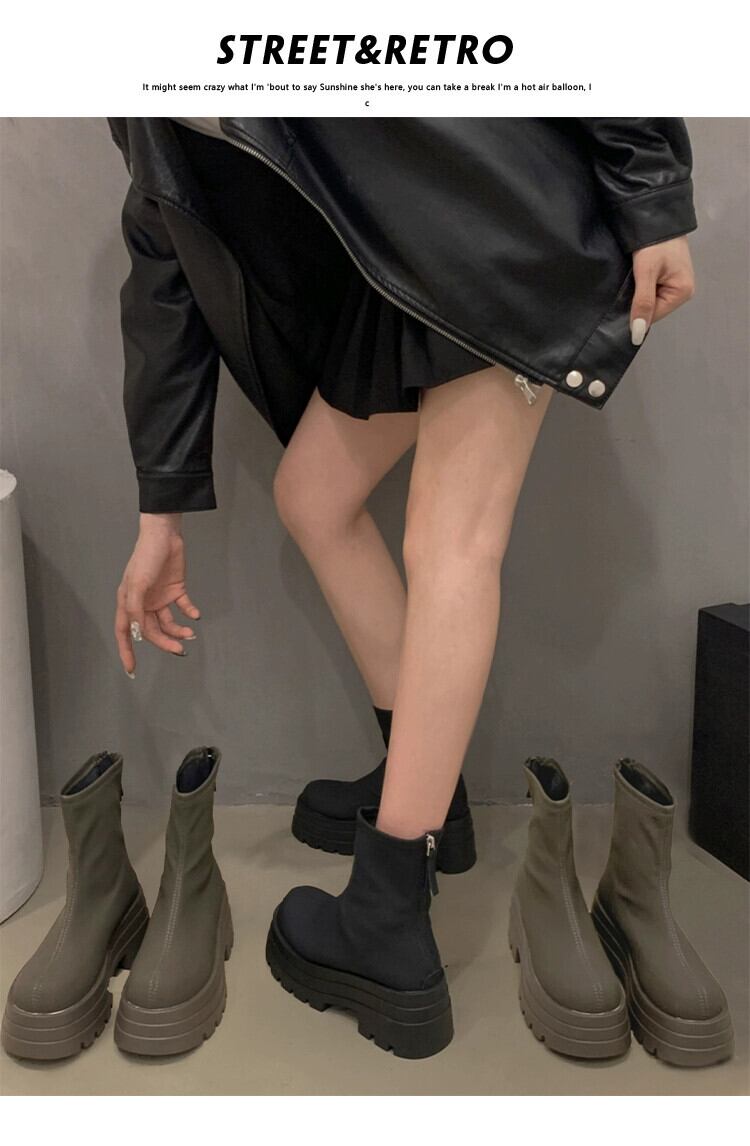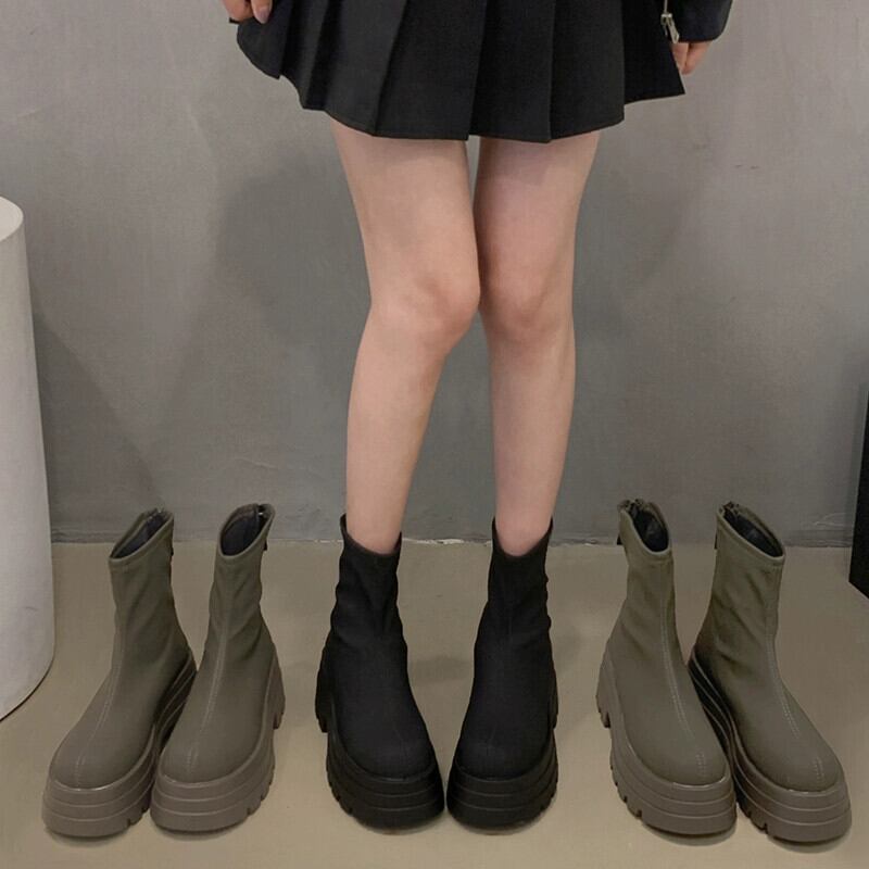 Jia Bujia 超人気ショートブーツ女性 2023 秋の新作レトロ多用途ファッショナブルな厚底スリムブーツ小柄な人 靴 シューズ オータム 秋物 jxjxf56655622295