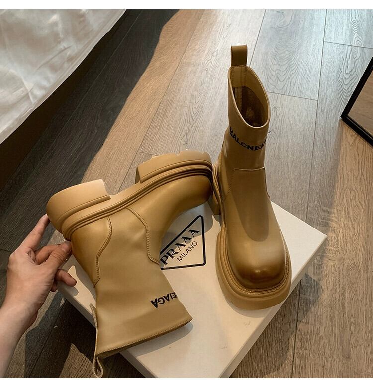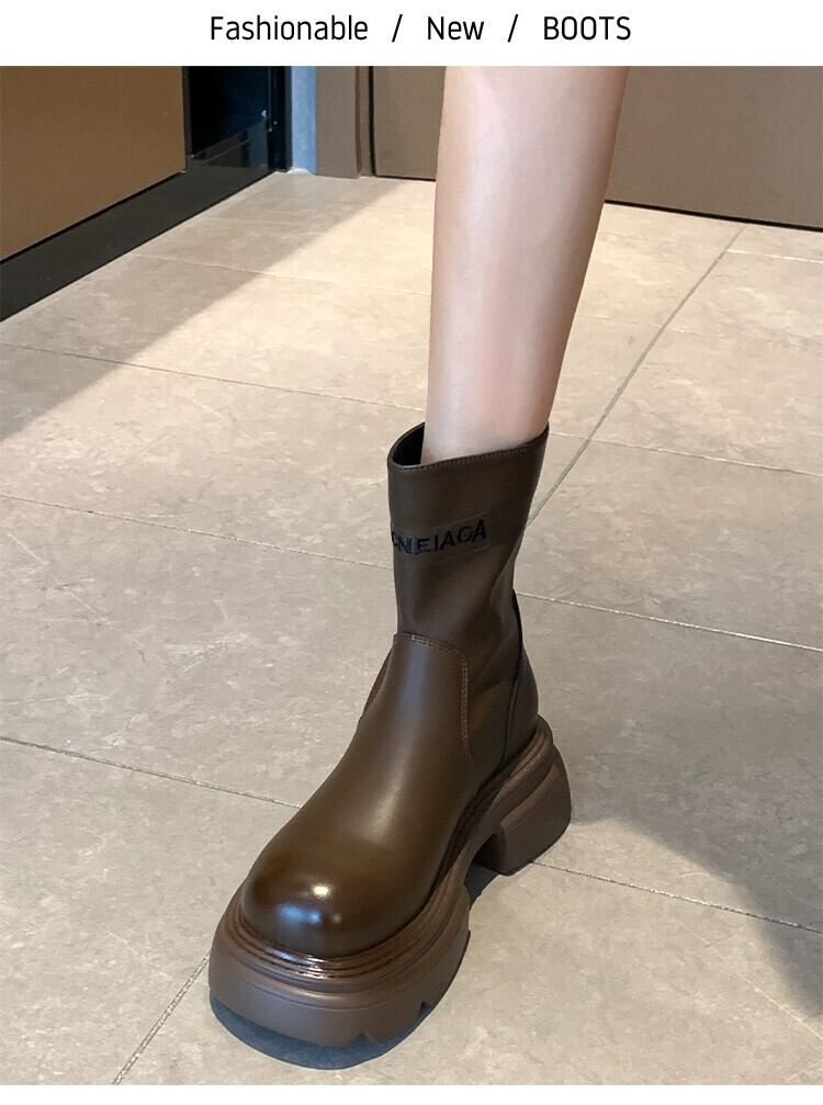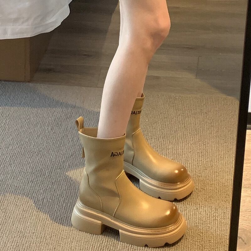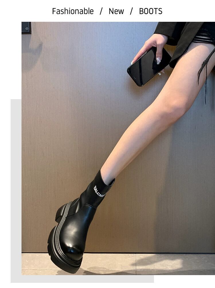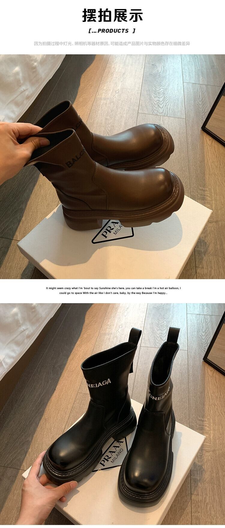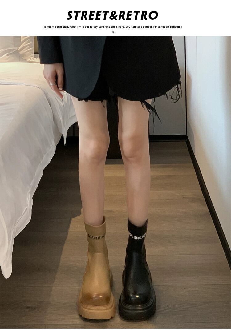 Jia Bujia インターネット有名人ショートブーツ女性 2023 秋の新ファッション多用途レトロハンサム厚底ストリートスリムブーツ 靴 シューズ オータム 秋物 jxjxf77092530258