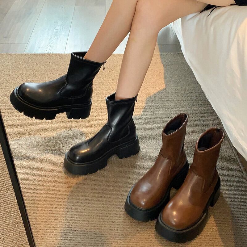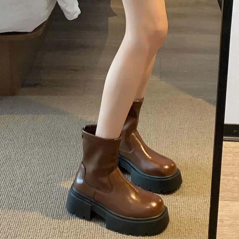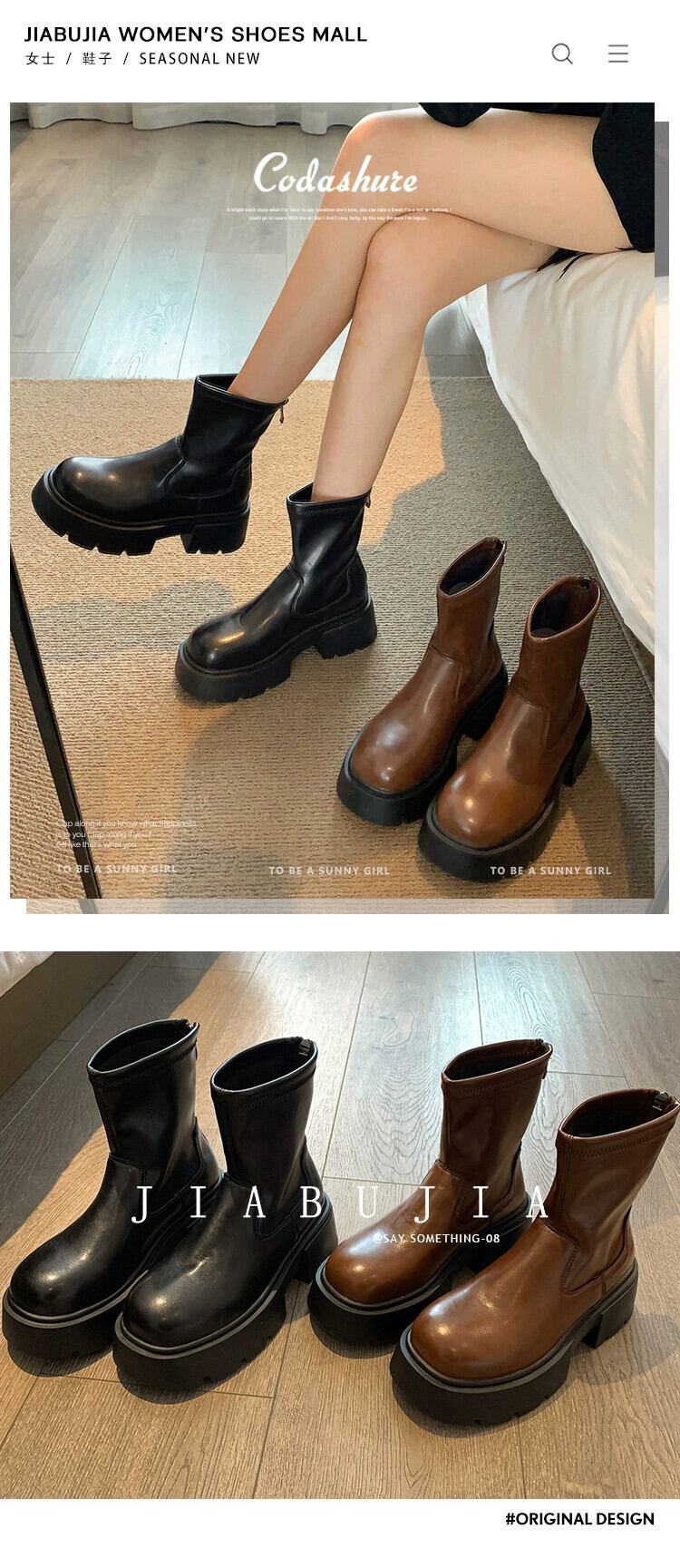 Jia Bujia ショートブーツ女性 2023 秋の新作スーパーファッションレトロハンサム厚底ストリートスリムブーツトレンド 靴 シューズ オータム 秋物 jxjxf52815130718