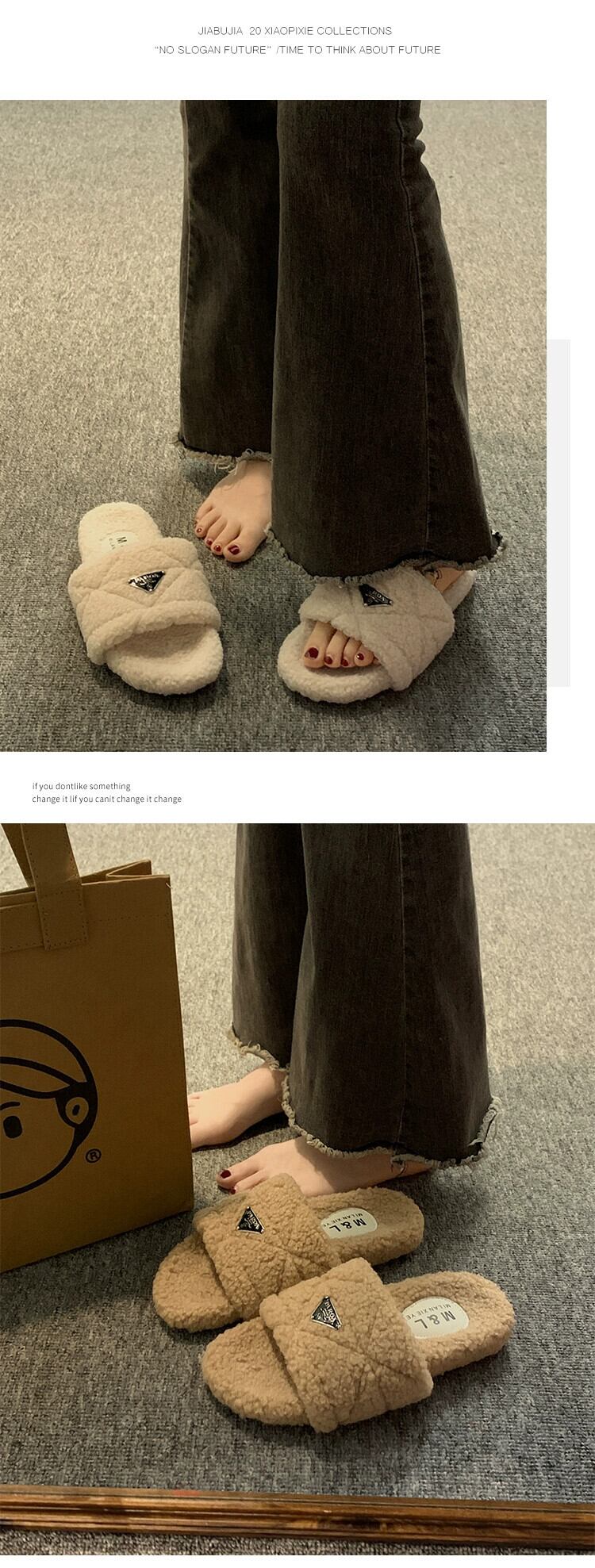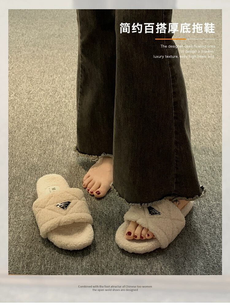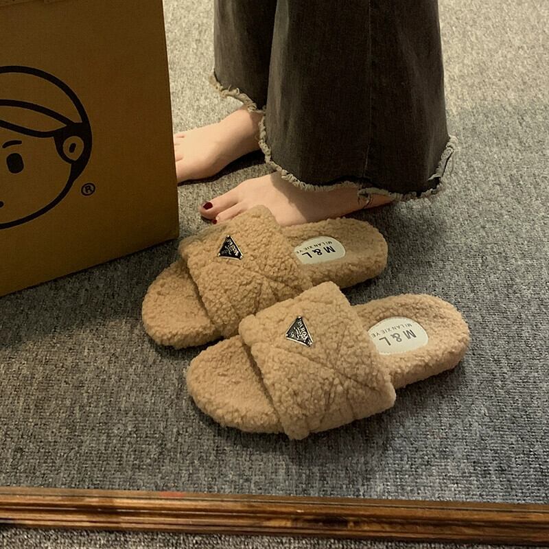 Jia Bujia インターネット有名人のスリッパ女性のアウターウェア 2023 新しい秋のファッションレトロなスタイルの平底 comtable 毛皮のスリッパ ミュール 靴 シューズ オータム 秋物 jxjxf35555165265