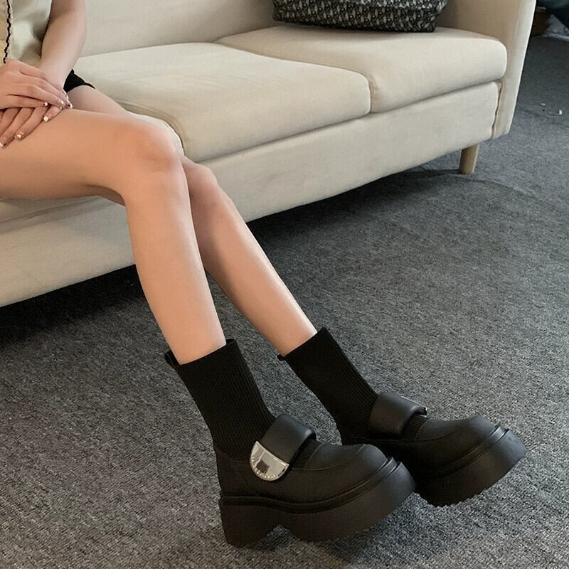 Jia Bufake ソックスブーツ レディース 2023 秋インターネットセレブ多用途レトロ西洋スタイル厚い底スリムニットストレッチブーツ 靴 シューズ オータム 秋物 jxjxf94068601479