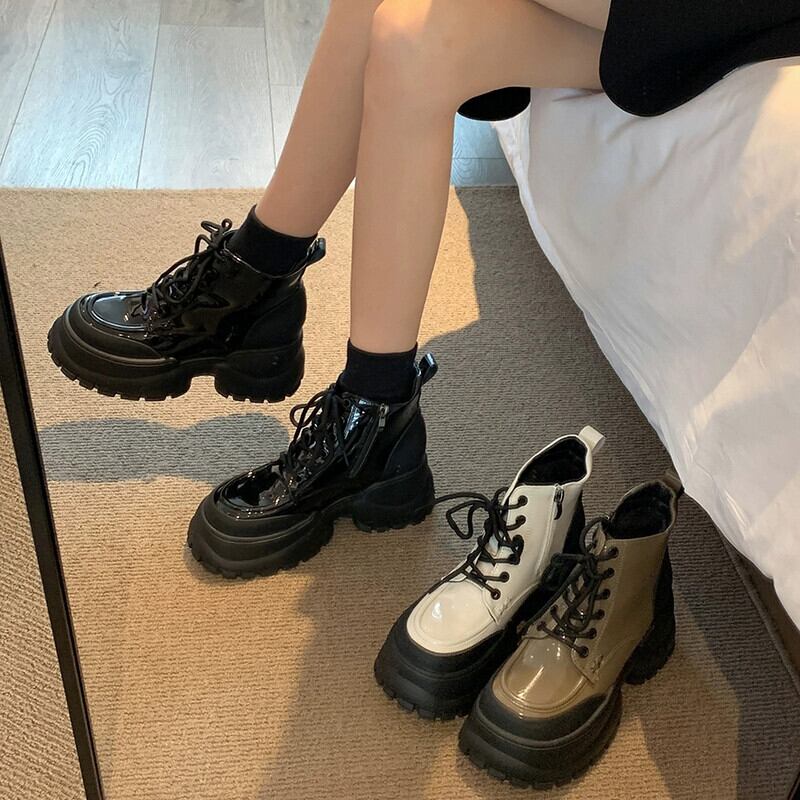 Jia Bujia インターネット有名人ショートブーツ女性 2023 秋の新ファッション多用途レトロハンサム厚底ストリートマーティンブーツ 靴 シューズ オータム 秋物 jxjxf68315034811
