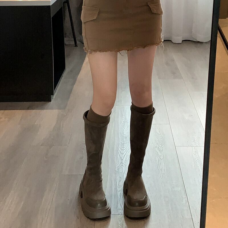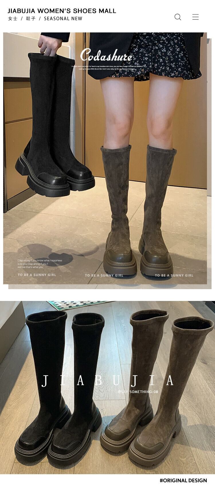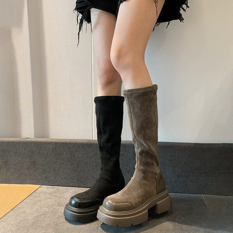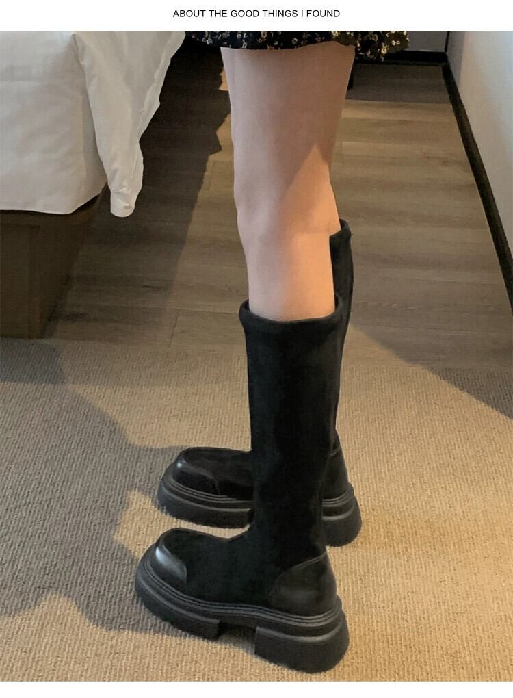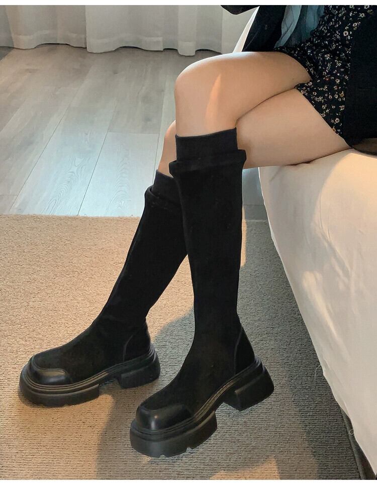 Jia Bufake ブーツの女性の 2023 新しい秋のファッションレトロな気質スリム弾性厚底ブーツ 靴 シューズ エラスティック 伸縮 オータム 秋物 jxjxf5133692532