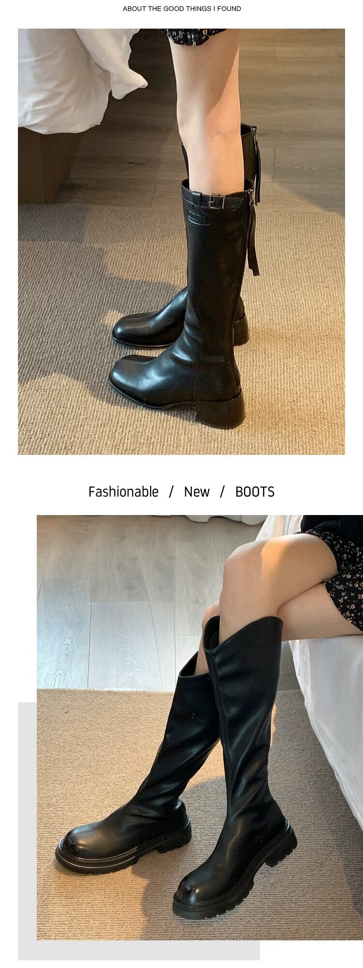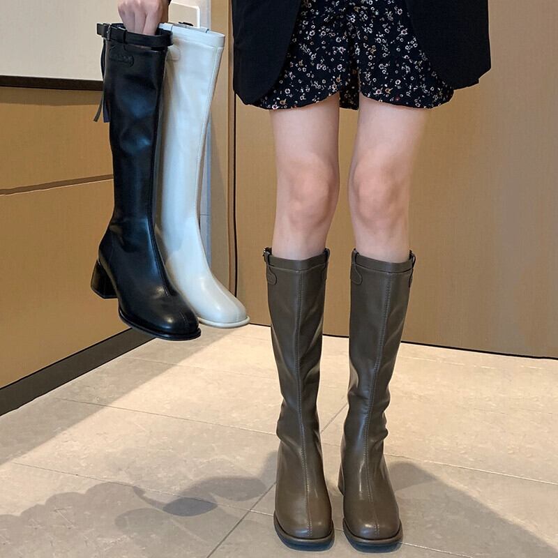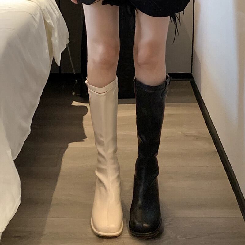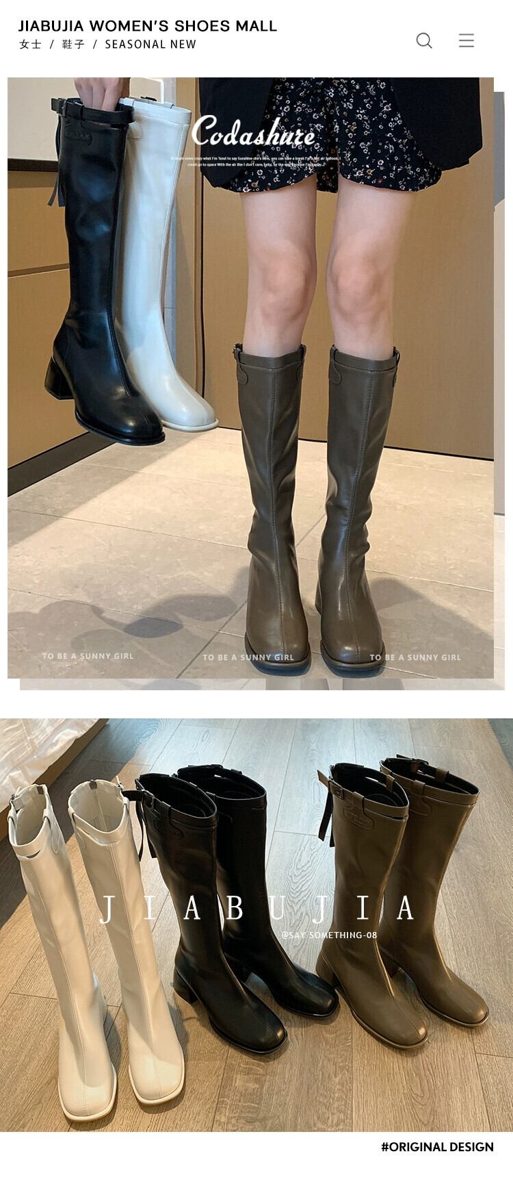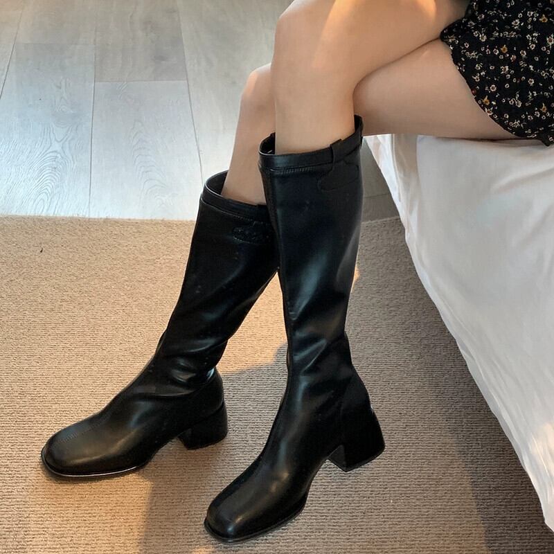Jia Bufake ブーツ レディース 2023 秋多用途レトロスリム太いヒールスクエアトゥスリムブーツ 靴 シューズ オータム 秋物 スクウェア jxjxf86726073232