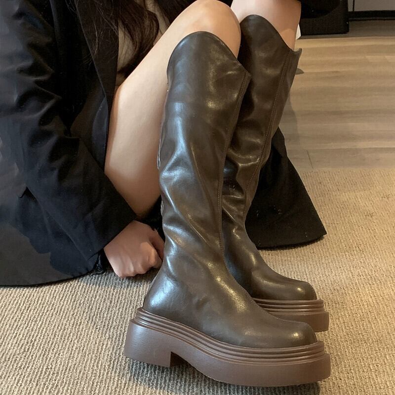 Jia Bujia ブーツの女性のブーツ 2023 秋の新多目的ファッションレトロ厚い底ナイトブーツのトレンドを高める 靴 シューズ オータム 秋物 jxjxf29528291791
