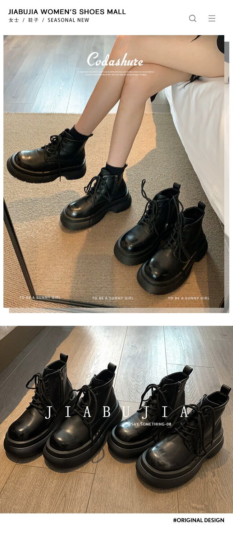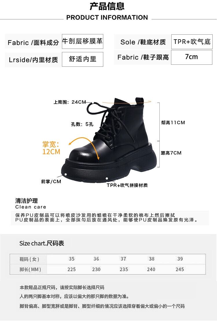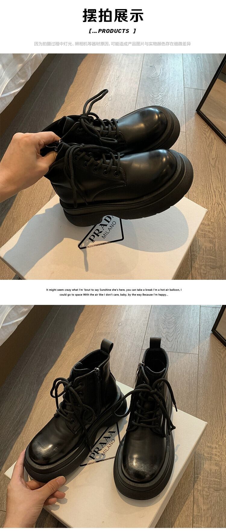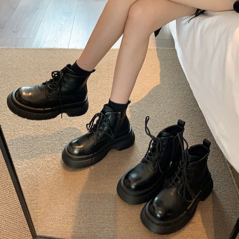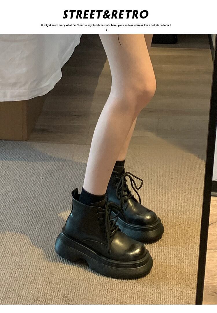 Jia Bujia レディース ショートブーツ 2023 秋スタイル ハンサムで多用途 レトロ 小型 厚底 ストリート マーティンブーツ 靴 シューズ オータム 秋物 jxjxf38077180027