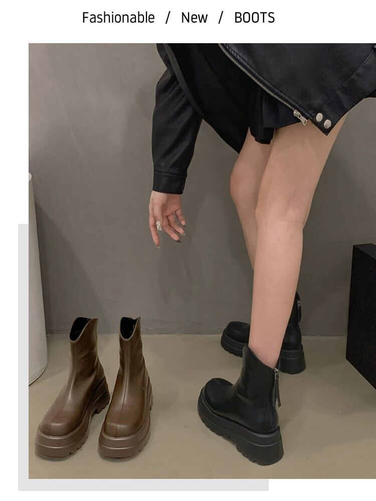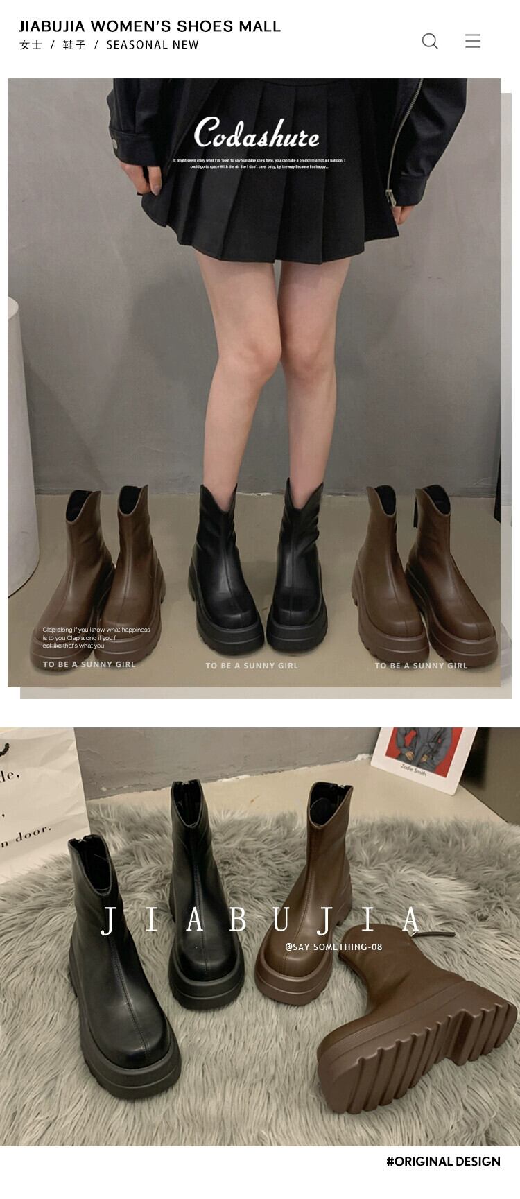 Jia Bujia 厚底ショートブーツ レディース、2023秋新作、シンプル、多用途、ウエスタンスタイル、快適、カジュアル、スリムブーツトレンド 靴 シューズ jxjxf27166977740