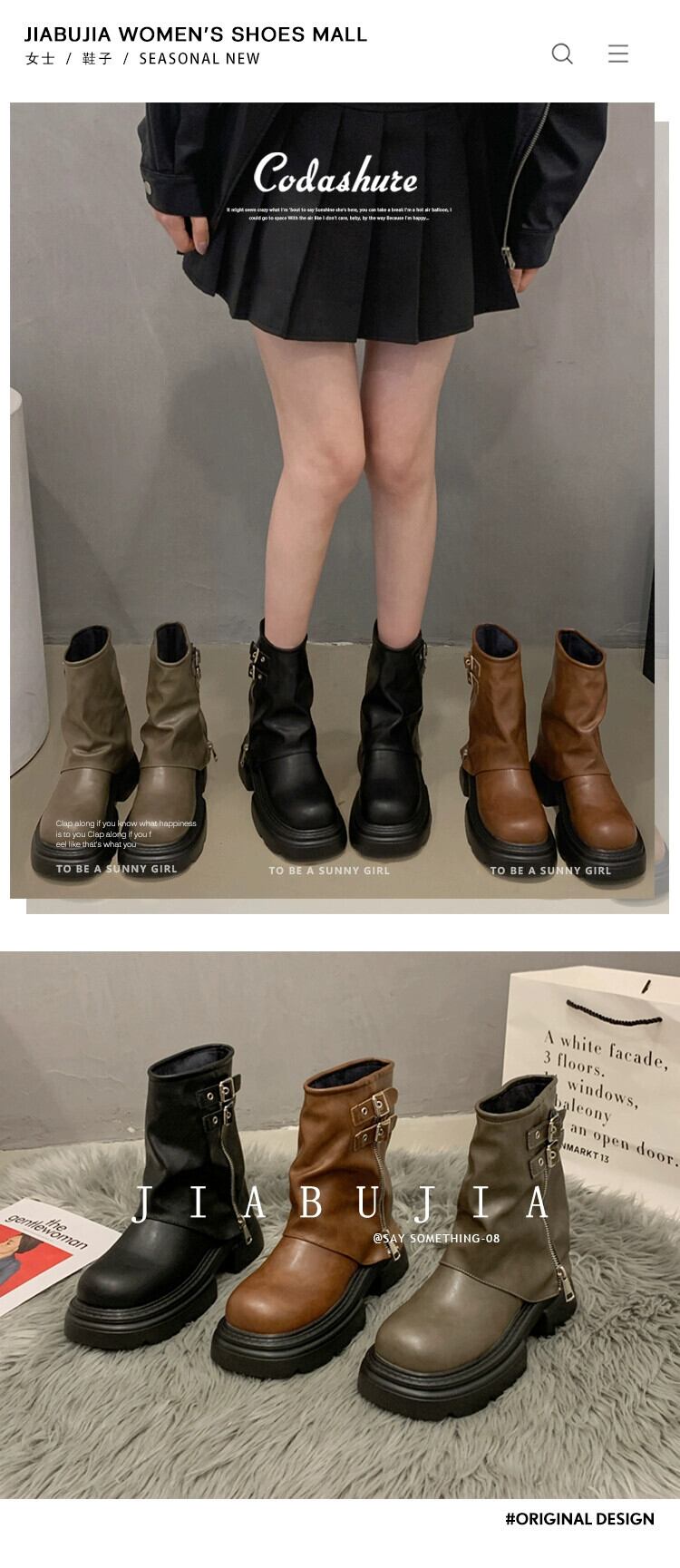 Jia Bujia インターネット有名人ショートブーツの女性の 2023 秋の新作トレンディなベルトバックルハンサムなファッション厚底ズボンブーツ 靴 シューズ オータム 秋物 ハーネス jxjxf74394299687