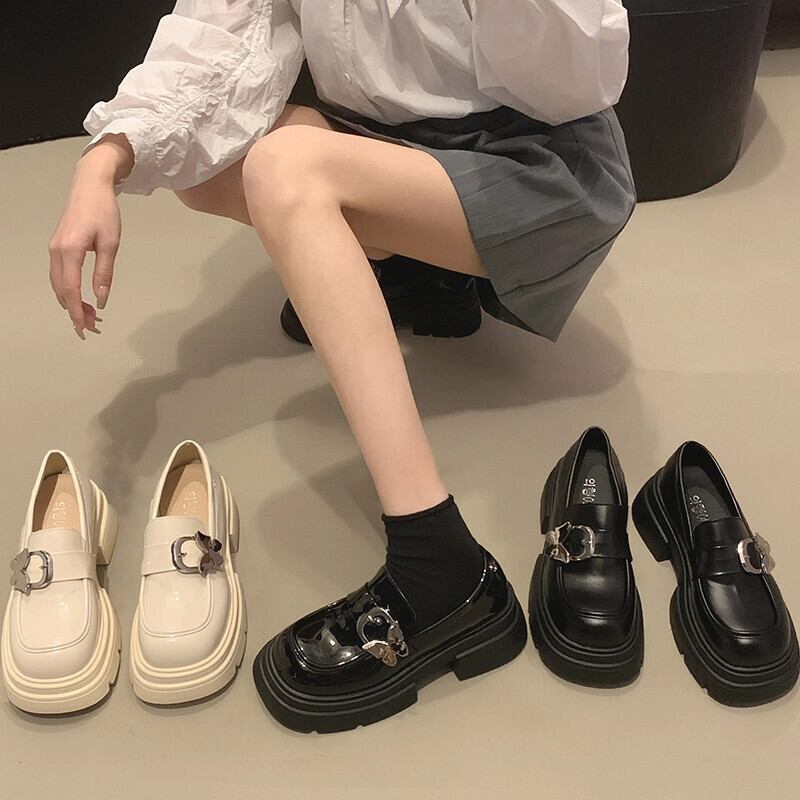 Jia Bujia インターネット有名人のシングルシューズの女性 2023 秋の新ファッション多用途レトロスタイルの厚底ローファー 靴 オータム 秋物 jxjxf5976323490